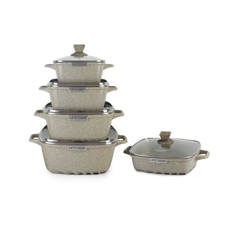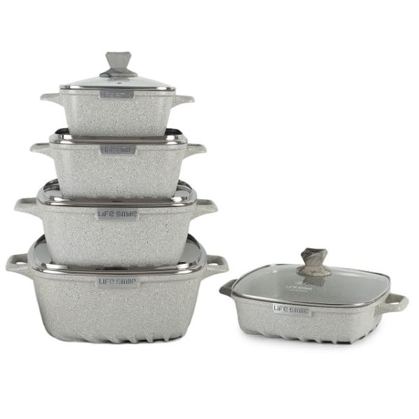 سرویس پخت و پز 10 پارچه لایف اسمایل مدل گرانیتی قالب مربع SPFتماس بگیرید