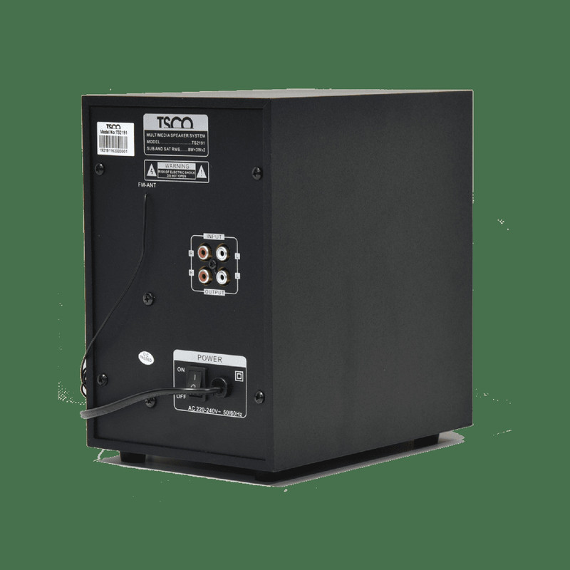 اسپیکر سه تکه تسکو مدل TS 2191 شامل یک ساب ووفر و دو اسپیکر است. کیفیت صدای این محصول بسیار مناسب بوده و شما می توانید آن را توسط بلوتوث، کابل AUX و یا پورت USB به دستگاه های دیگر متصل کنید. همچنین از کارت حافظه و رادیو نیز پشتیبانی می کند.