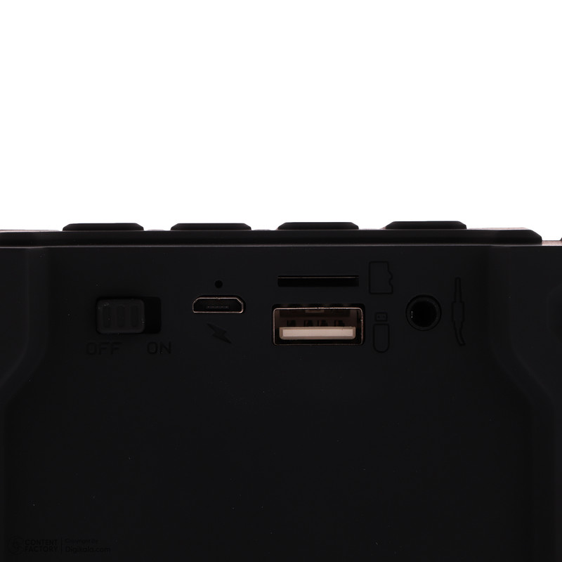 باتری لیتیوم-یونی 1200 میلیآمپری در مدت 4 تا 5 ساعت شارژ شده و توان خروجی 700 وات با وضوح صدای 80 دسیبل را ارائه میدهد. این محصول همراه با کابل USB، کابل AUX، دفترچهی راهنما و یک بند حمل عرضه شده و تجربهای لذتبخش از موسیقی را در هر شرایطی برای شما فراهم میکند.