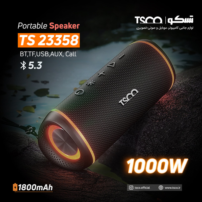 اسپیکر بلوتوثی تسکو مدل TS 23358 نه تنها از نظر عملکرد برتر است، بلکه از لحاظ طراحی نیز بینظیر است. این اسپیکر با ابعاد 2208585 میلیمتر و وزن 615 گرم به راحتی قابل حمل است.