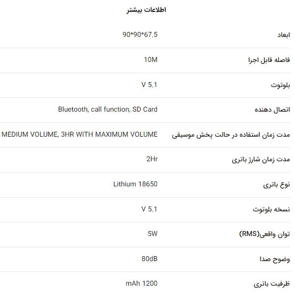 اسپیکر تسکو مدل TS 23310 از برند تسکو در ابعاد 67.5x90x90 و وزن 221 گرمی در رنگ مشکی طراحی شده، اسپیکر تسکو مدل TS 23310 دارای یک باطری لیتیومی 1200 میلی آمپری ست که در عرض 2 ساعت بطور کامل شارژ خواهد شد و شما میتوانید با خیال راحت تا 3 ساعت با صدای بلند و تا 12 ساعت با صدای متوسط در هر جایی به موسیقی گوش کنید.