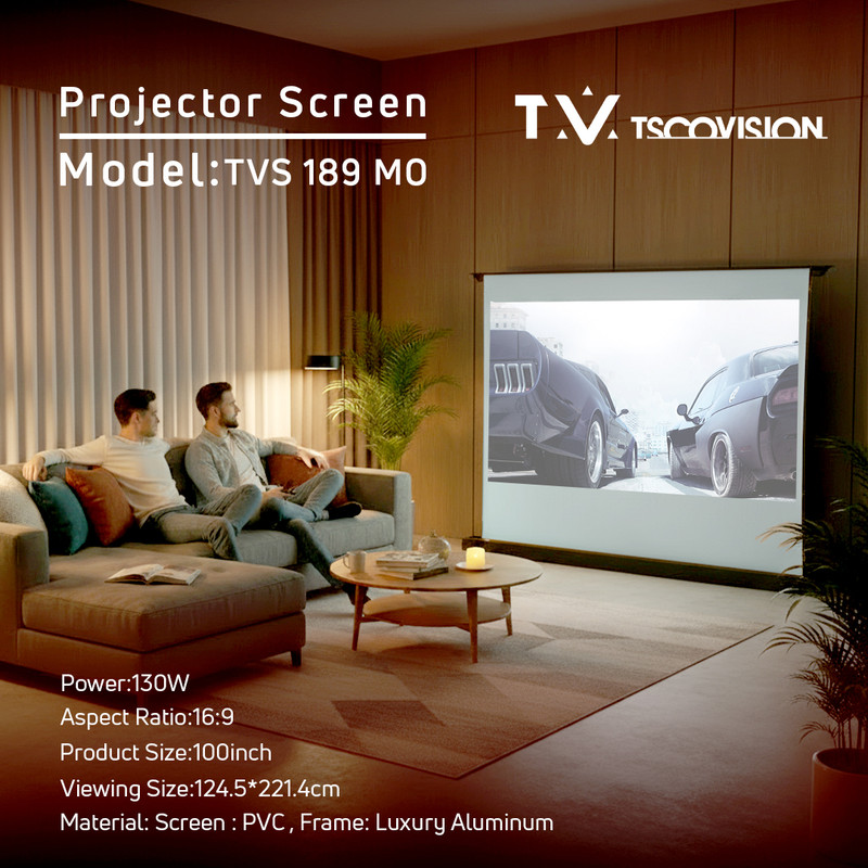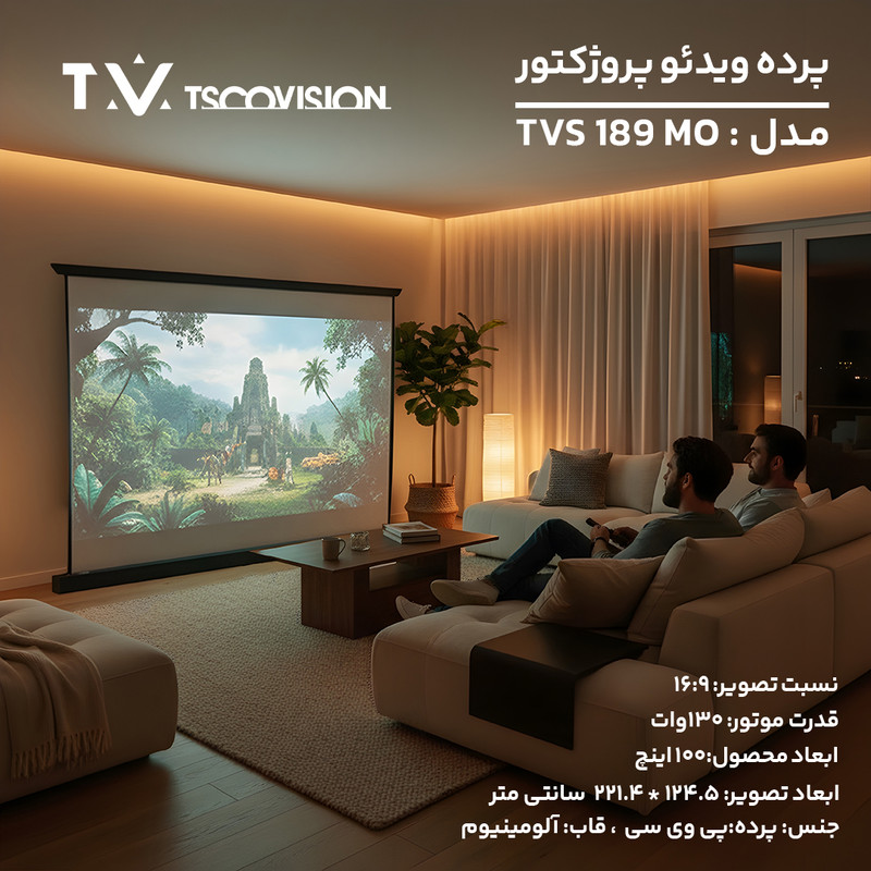 سایر توضیحات: ابعاد محصول : 100 اینچ / رنگ فریم : مشکی و رنگ پرده صفحه نمایش : طوسی / نسبت تصویر : 16:9 / پوشش ضد نور قابل استفاده در فضای دارای نور / زاویه نمایش : 160 درجه / دارای جعبه کنترل / دارای ریموت کنترل وایرلس / مجهز به جک بالابر برقی از کف