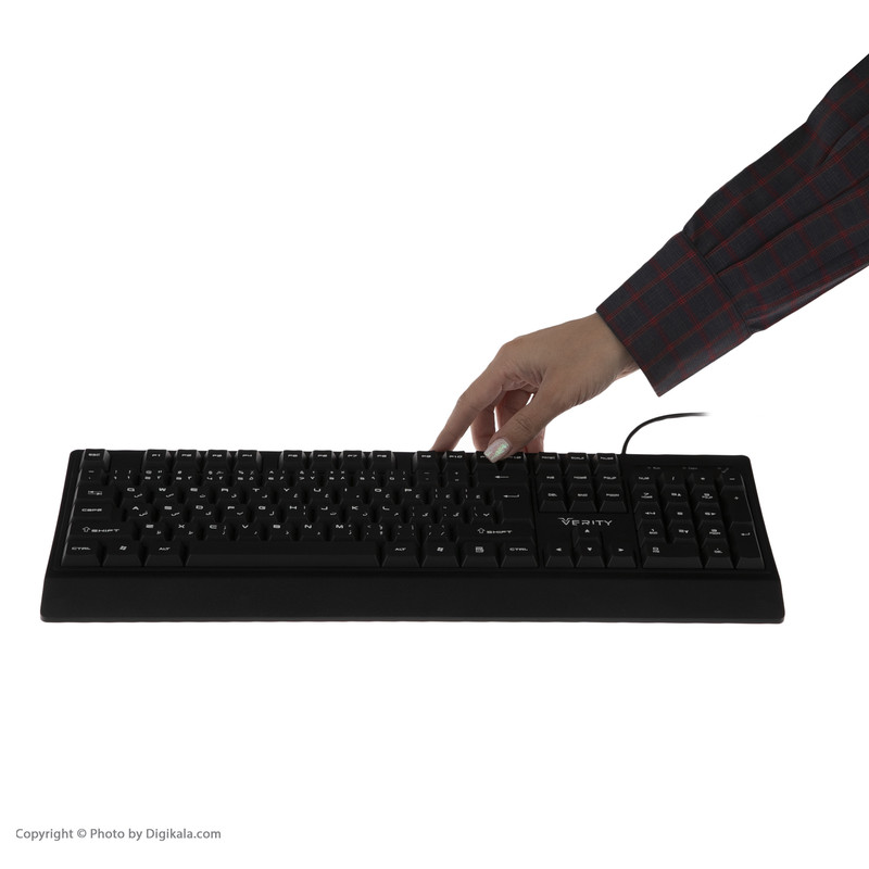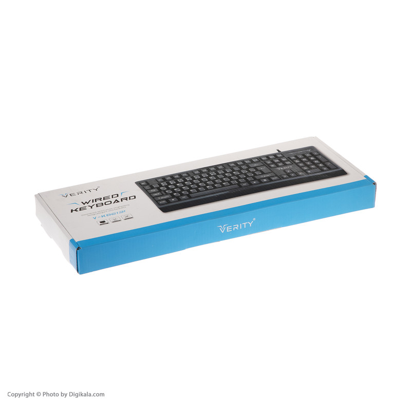 کیبورد V-KB6131 از جمله کیبوردهای شرکت وریتی است. این کیبورد با سیم بوده و نوع رابط آن USB است. وزن این کیبورد 550 گرم بوده و میتوانید بهراحتی در صورت لزوم آن را با خود حمل کنید. طول کابل این کیبورد 150 سانتی متر خواهد بود؛ بنابراین برای اتصال آن به کیس مشکلی به وجود نمیآید و کاملا اندازه است. منبع تغذیه برق بوده و با اتصال به کیس؛ کیبورد شما فعال خواهد شد. این کیبورد با کامپیوتر و لپ تاپ سازگار است. تعداد کلیدهای آن 103 عدد بوده و کامل است. صفحه اعداد در سمت راست قرار دارد. ابعاد آن برابر 442x166x29 میلیمتر است. ولتاژ این کیبورد 5 ولت است.از قابلیتهای کیبورد میتوان به حروف حک شده فارسی اشاره کرد. عمر یا ضربهپذیری کلیدها 8000000 خواهد بود. این کیبورد به لحاظ ارگونومی طراحی مناسبی دارد و برای کار با آن به سختی نخواهید افتاد.