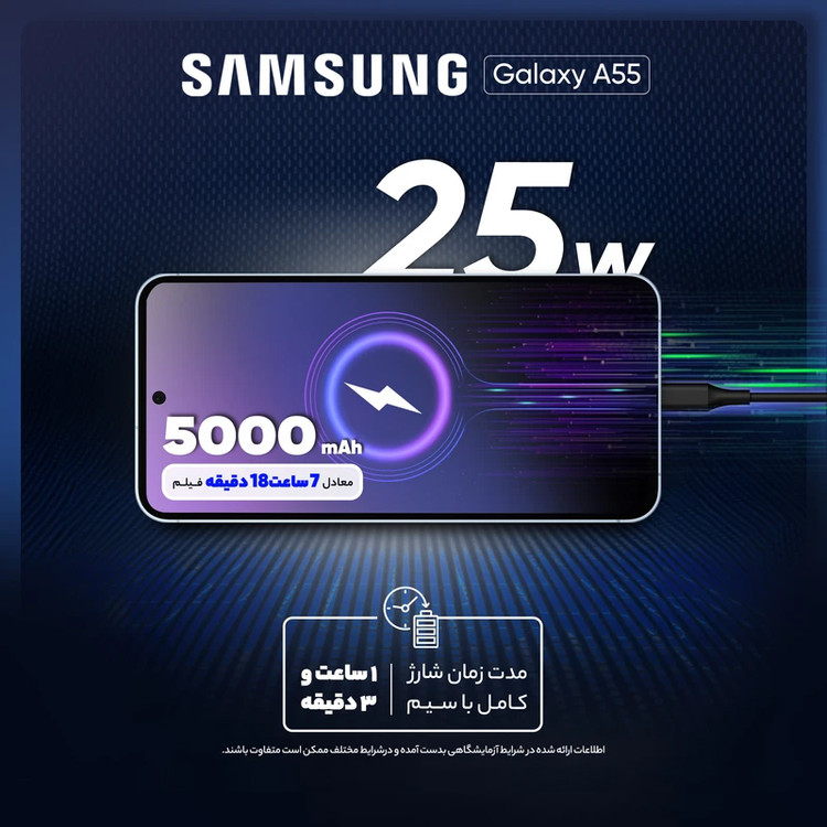 گوشی موبایل سامسونگ مدل Galaxy A55 نسخهی به روزشدهی میانردهی محبوب A54 محسوب میشود. این گوشی با بهرهمندی از نمایشگر 6.6 اینچی Super AMOLED با کیفیت با نرخ تازهسازی 120 فریم برثانیه یکی از بهترین نمایشگرهای میانرده را دارد. در بخش دوربین، رزولوشن 50 مگاپیکسلی و لرزشگیر اپتیکال تصاویر بسیار با کیفیتی ثبت میکند و باتری 5000 میلیآمپرساعتی آن به راحتی تا یک روز شارژدهی دارد. اما یکی از مهمترین پیشرفتهای این گوشی در بخش طراحی است و به قاب پشتی شیشهای و فریم آلومینیومی مجهز شده است که علاوه بر زیبایی، استحکام بسیار خوبی به آن بخشیده است. در مجموع، Galaxy A55 با همهی امکانات مناسبی که دارد توانسته است در مدت کمی به یکی از پرفروشترین میانردههای بازار تبدیل شده است.