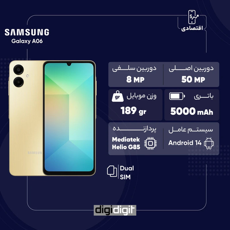 Samsung Galaxy A06 یک گوشی اقتصادی مناسب برای کاربرانی است که به دنبال یک دستگاه با صفحهنمایش بزرگ، باتری قدرتمند، طراحی مدرن و رابط کاربری بهروز هستند. عملکرد پردازشی آن برای کارهای روزمره کاملاً مناسب است، اما برای اجرای بازیهای سنگین ممکن است محدودیتهایی داشته باشد. در مجموع، اگر به دنبال یک گوشی مقرونبهصرفه از برند سامسونگ هستید که بتواند نیازهای اساسی شما را بهخوبی برآورده کند، Galaxy A06 میتواند گزینهای ایدهآل برای شما باشد.