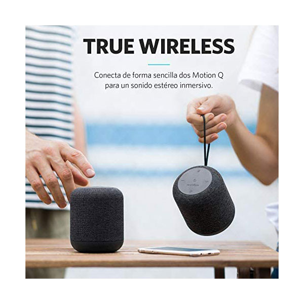 اسپیکر بلوتوث Anker Motion Q 360 یک ابزار برای پخش فایلهای صوتی است. به دلیل طراحی استوانهای شکل اسپیکر Motion Q 360 صدا در تمام جهات به صورت 360 درجه پخش میشود و با قابلیت ضد آب و غیر قابل نفوذ گرد و غبار به درون آن امکان استفاده در مکانهای مختلف را فراهم میکند. این اسپیکر بلوتوث دارای یک بند مچی است تا بهراحتی آن را آویزان کنید و در دستتان بگیرید. اسپیکر Motion Q 360 انکر همراه شما در ماجراهای زندگی است. درایور دوگانه منفعل Motion Q به طور منظم در اطراف اتاق، صدای خیره کننده 360 درجه را پخش میکند. در واقع در هر نقطه ای از اتاق که باشید میتوانید از شنیدن صدای موسیقی لذت ببرید. Motion Q با بهره گیری از تکنولوژی BassUpTM منحصر به فرد، صدایی عمیق با وضوح نفس گیر دارد. پردازنده سیگنال دیجیتال سفارشی سازه شده برای اولین بار تجزیه و تحلیل، و سپس فرکانسهای باس موسیقی خود را در زمان واقعی افزایش میدهد. سپس این سیگنال صوتی از طریق درایور نئومیوم پیشرفته به صدای تشدیدشده، تبدیل میشود. پوسته ضد آب IPX7 یک مانع غیر قابل نفوذ در اطراف اجزای داخلی اسپیکر انکر ایجاد می کند، این لایه، اسپیکر را از مایعات مخرب و آسیب های احتمالی محافظت می کند وصدای اسپیکر انکر Motion Q هیچگاه در زندگی شما متوقف نمی شود. Anker of Soundcore ما را قادر می سازد تا یک باتری لیتیوم یونی با کارایی بالا با سیستم مدیریت انرژی پیشرفته Anker ترکیب کنیم. این ویژگی برای بهینه سازی مصرف انرژی طراحی شده است، که اجازه میدهد Motion Q برای مدت طولانی تا حداکثر 10 ساعت موسیقی با هر بار شارژ پخش کند. شما میتوانید دو اسپیکر انکر Motion Q را به هم متصل کرده و حجم صدای موسیقی را دو برابر کنید. اسپیکر انکر Motion Qیک اسپیکر پرتابل است و هر جایی که بخواهید میتوانید آن را همراهتان ببرید. این اسپیکر وزن کمی دارد و دارای یک بند نگهدارنده جهت آویزان کردن دور مچ دست یا قلاب کردن به هرچیزی در هر جایی است.