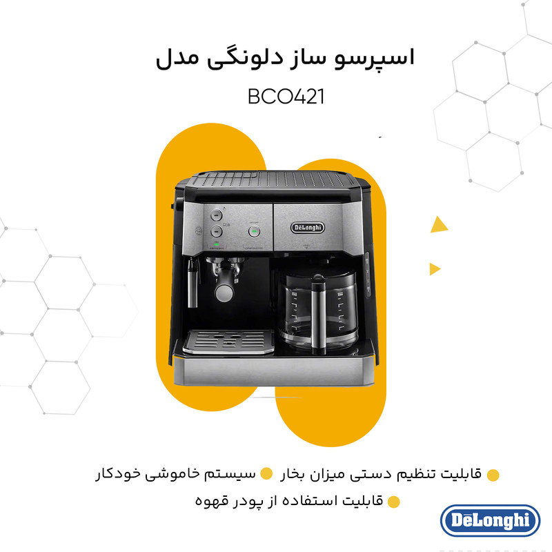اسپرسو ساز دلونگی مدل BCO421 یکی از بهترین انتخاب ها برای طرفداران قهوه می باشد. این دستگاه قابلیت تهیه اسپرسو، کاپوچینو و قهوه فوری را در خانه یا محل کار شما فراهم می کند. با قدرت 1100 وات، طراحی زیبا و کاربردی و نمایشگر دیجیتال، شما به سرعت و به سهولت می توانید قهوه مورد علاقه خود را تهیه کنید. این دستگاه دارای مخزن آب به ظرفیت 1.2 لیتر می باشد که به شما امکان تهیه چندین فنجان قهوه را در یک بار داده است. همچنین دارای مخزن قهوه و کاپوچینو به ظرفیت 200 گرم و همچنین قابلیت تنظیم شدت قهوه و حتی اندازه بخار برای تهیه کاپوچینو است. با صفحه نمایش دیجیتال و دکمه های آسان، این دستگاه بسیار ساده در استفاده است و با بدنه ضد زنگ، آن را می توان به راحتی تمیز کرد. با وجود تمام این ویژگی ها، قیمت این دستگاه نیز بسیار مناسب است که برای خانوادهها و کسانی که به دنبال یک دستگاه با کارایی بالا و کیفیت مناسب هستند، پیشنهاد می شود.