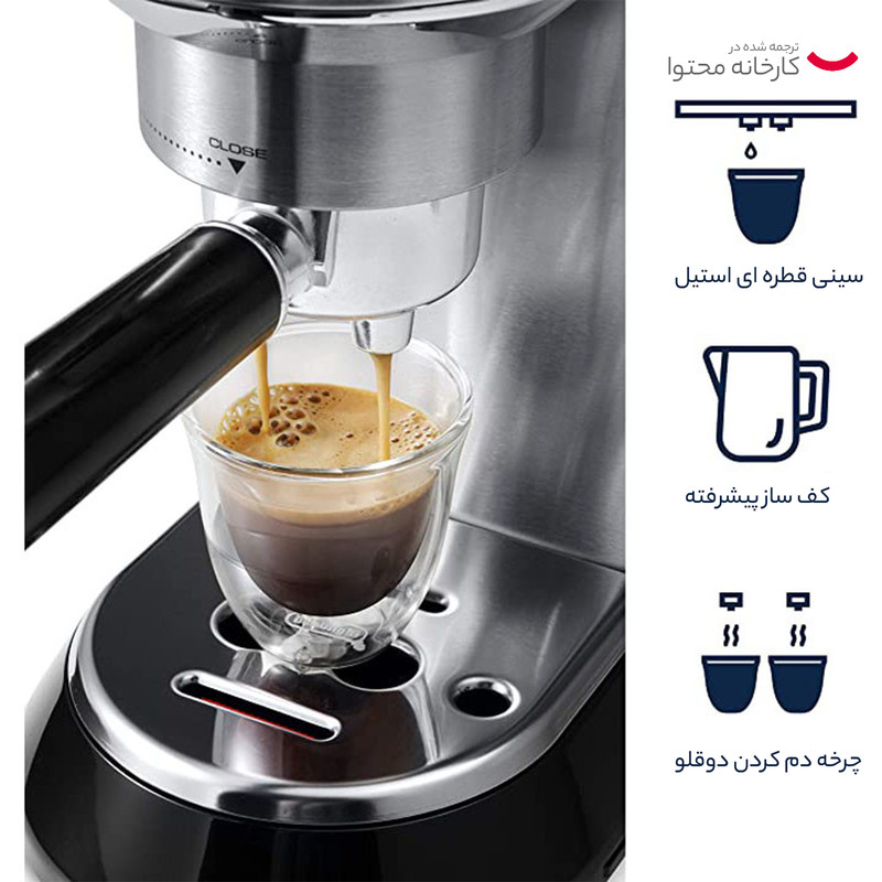 "سیستم کاپوچینوساز قابل تنطیم": این سیستم بخار و هوا و شیر را میکس می کند تا با تولید کف شیر غلیظ، خامه ای و کف دار، کاپوچینویی عالی بدست آید. نگهدارنده فیلتر قهوه حرفه ای؛ هم برای قهوه آسیاب هم قهوه کیسه ای همراه با ابزاری برای خامه گیری برای یک یا دو پیمانه قهوه آسیاب یا قهوه کیسه ای سیستم سلف پرایمینگ به این معناست که دستگاه همیشه آماده استفاده است امکان خروج آب داغ مخزن آب جداشدنی سینی چکه جداشدنی با نشانگر سطح آب سیستم ضد چکه قفسه گرم کننده فنجان دارای فیلتر آب(اختیاری) دکمه روشن/خاموش با عملکرد استندبای اتوماتیک بعد از یک دوره مدت زمان عدم استفاده به منظور ذخیره انرژی اعلام فرا رسیدن زمان رسوب زدایی