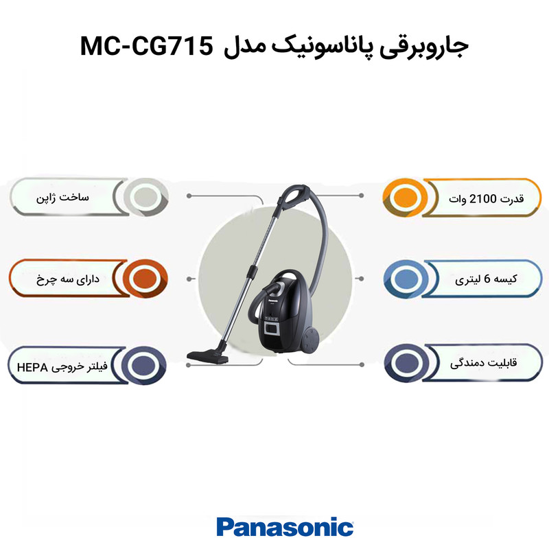 -مجهز به لوله تلسکوپی جادویی - دارای دستگیره با طراحی جدید سابر - دارای نازل دو بخشی - قابلیت تنظیم کنترل مکش متغیر - بدون امکان استفاده از کیسه یکبار مصرف - میزان صدا 65 دسیبل
