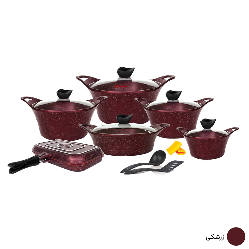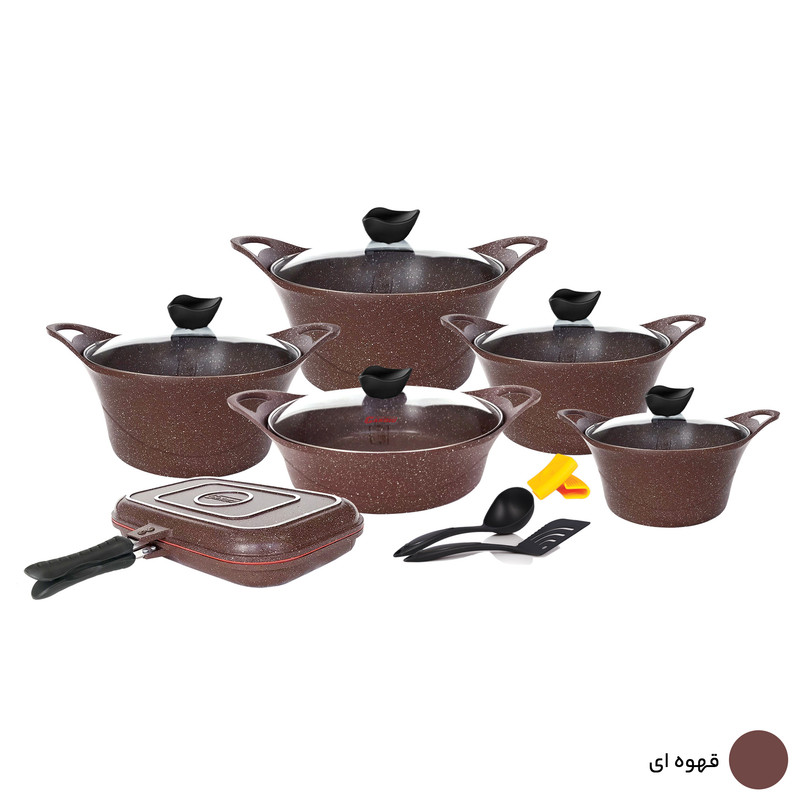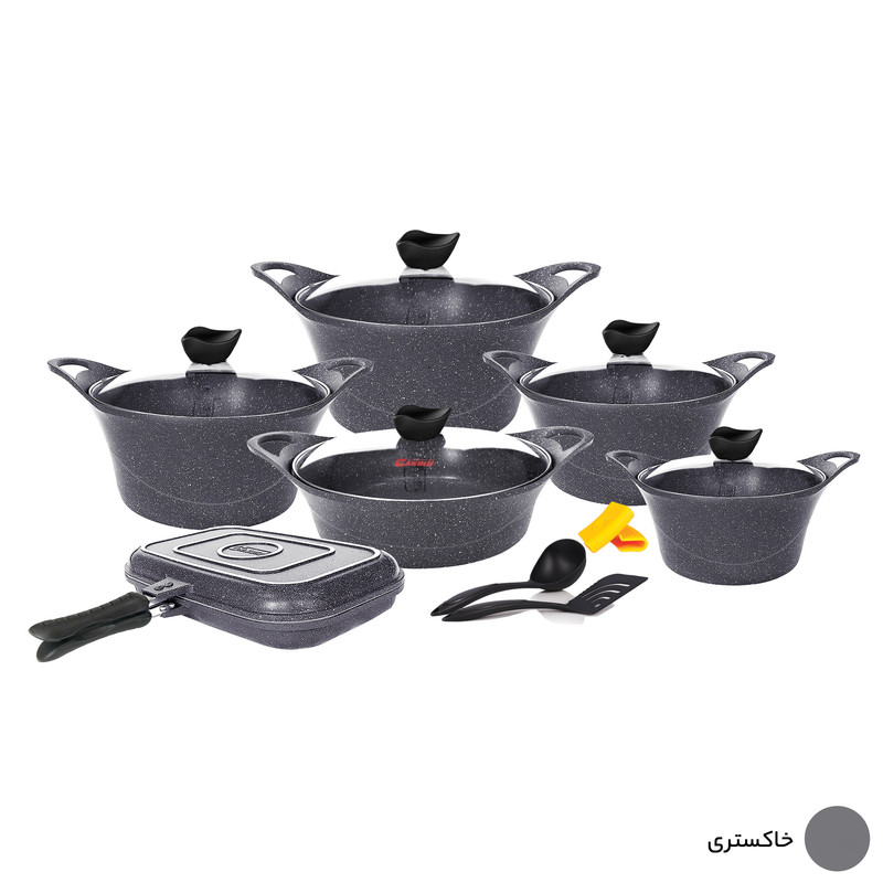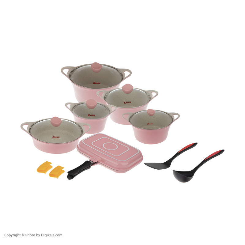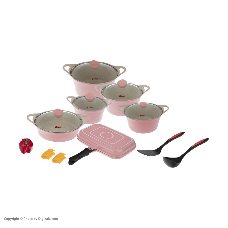 داشتن قابلمه و تابه در سایزهای مختلف یکی از کاربردیترین لوازمی است که در هر آشپزخانه به آن نیاز است. سرویس پخت و پز 15 پارچه کاندید مدل CAPRIکد 03 این ست بدنهی بسیار ضخیم و مقاومی دارد و برای طبخ انواع غذاهای ایرانی مورد استفاده قرار میگیرد. روکش تمام ظروف گرانیتی است؛ به همین دلیل از نچسببودن و شستوشوی آنها خیالتان آسوده خواهد بود. در این سرویس پختوپز توزیع حرارت در ظروف کاملا یکنواخت بوده و از ضخامت مطلوبی برخوردار است تا مانع از سوختن غذا شود. این سرویس زیبا مشتمل بر 4 قابلمه، 2 عدد تابه، 1 عدد کفگیر و 1 عدد ملاقه و 2 عدد دستگیره سلیکونی است. در صورتی که به دنبال یک سرویس پخت و پز با کاربردی فراوانی است این محصول را به شما پیشنهاد میکنیم.