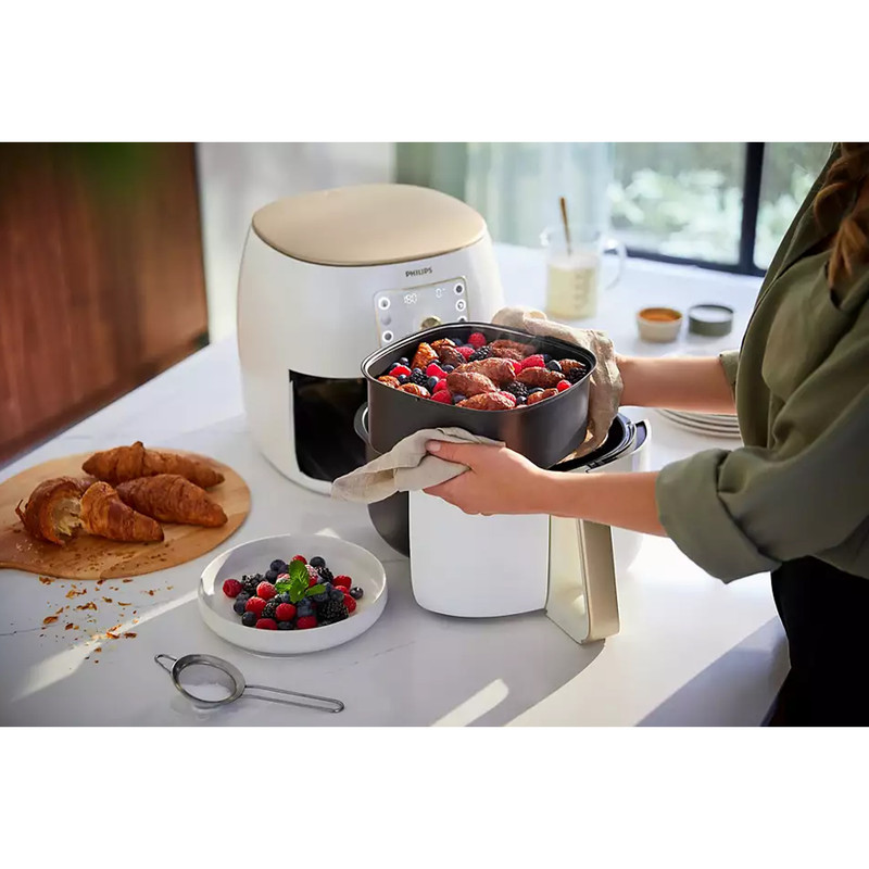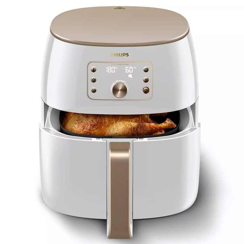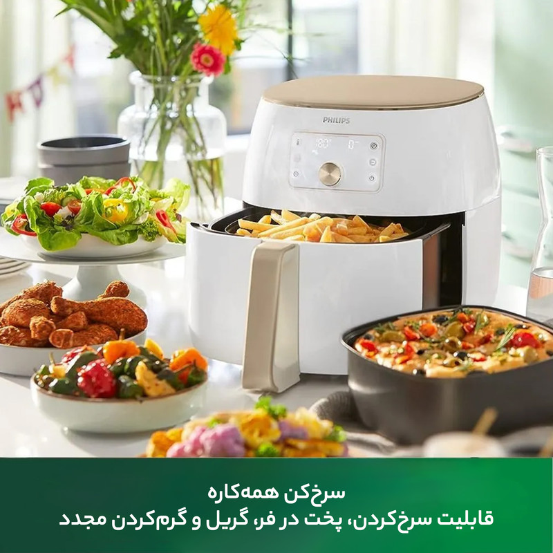 سرخکن بدون روغن فیلیپس مدل HD9870/20 از سری محصولات پیشرفته و پرقدرت برند Philips است که با ظرفیت ۷.۳ لیتری، توان ۲۲۲۵ وات و فناوریهای نوآورانهای مثل Rapid Air و حذف چربی (Fat Removal) طراحی شده تا تجربهای سالم، سریع و دقیق از آشپزی را برای خانوادههای ۵ تا ۶ نفره فراهم کند. طراحی دیجیتال، بدنه عایق سرد، پنجره شفاف، و قابلیت ذخیره برنامههای دلخواه، این مدل را به گزینهای ممتاز در میان هواپزهای خانگی تبدیل کرده است.