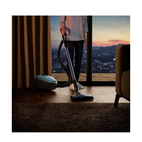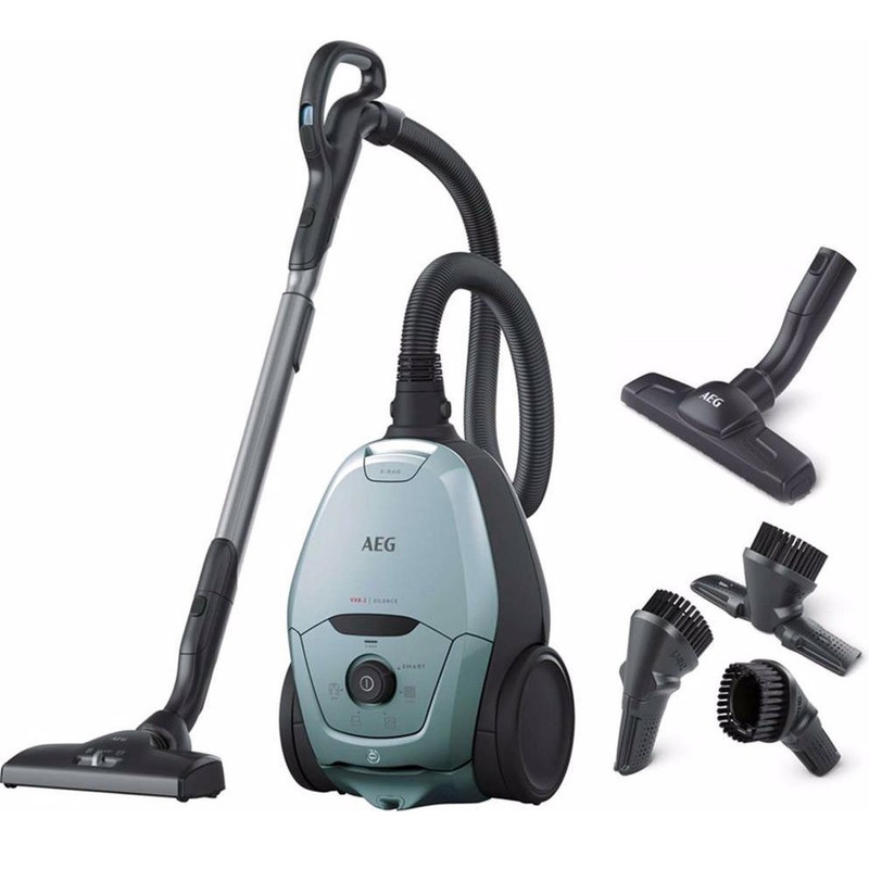 ویژگی جاروبرقی آاگ مدل VX82-1-4MB این محصول یکی از کم صدا ترین جارو برقی های موجود در بازار است که با توان مصرفی 600 وات و مکش 2200 وات تنها 57 دسی بل صدا تولید می نماید بنابراین شما می توانید در نهایت آرامش به تمیز کردن منزل خود بپردازید. جنس بدنه این محصول از پلاستیک فشرده می باشد و به رنگ آبی آسمانی تولید شده که در تلفیق با رنگ نوک مدادی در کناره ها ظاهر بسیار زیبایی پیدا کرده است. کلید های روشن و خاموش کردن دستگاه و سیم جمع کن آن و همچنین کلید تعیین قدرت مکش این دستگاه روی بدنه قرار گرفته است. همچنین جارو برقی آاگ مدل VX82-1-4MB دارای فیلتر ضد حساسیت عالی، با کیفیت و قابل شستشو می باشد که مانع از پخش شدن ذرات گرد و غبار در محیط خانه شده و برای کسانی که مبتلا به آسم و بیماری های آلرژیک هستند می تواند مفید باشد. از آنجا که این مدل جاروبرقی آاگ از نوع ECO است علاوه بر تولید صدای بسیار کم، در حدود 75 درصد در مصرف برق هم صرفه جویی می کند. از دیگر ویژگی های برجسته این جاروبرقی کنترل حرکت آن با چرخ های بزرگ و عملکرد نرم و آسان آن است. کیسه کلاسیک نوع S-BAG جارو برقی آاگ با 3٫5 لیتر ظرفیت گرد و غبار زیادی را در خود جای داده و 1 کیسه گرد و غبار اضافی نیز دارد. همچنین این دستگاه دارای نشانگر پرشدن کیسه گرد و غبار می باشد که با هشدار آن می توانید نسبت به تعویض کیسه اقدام نمایید. جاروبرقی آاگ مدل VX82-1-4MB دارای یک پارویی برای جارو کشی سطوح مختلف می باشد و همچنین سَری های مختلفی نیز برای این محصول در نظر گرفته شده که با کمک آن ها می توانید اثاثیه، مبلمان و همچنین جاهای باریک و شکاف ها را به راحتی تمیز نمایید.
