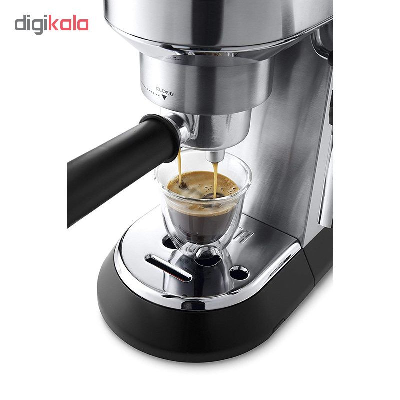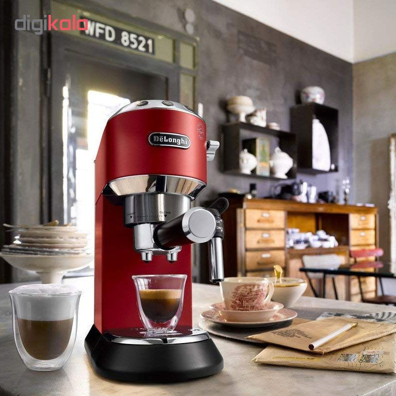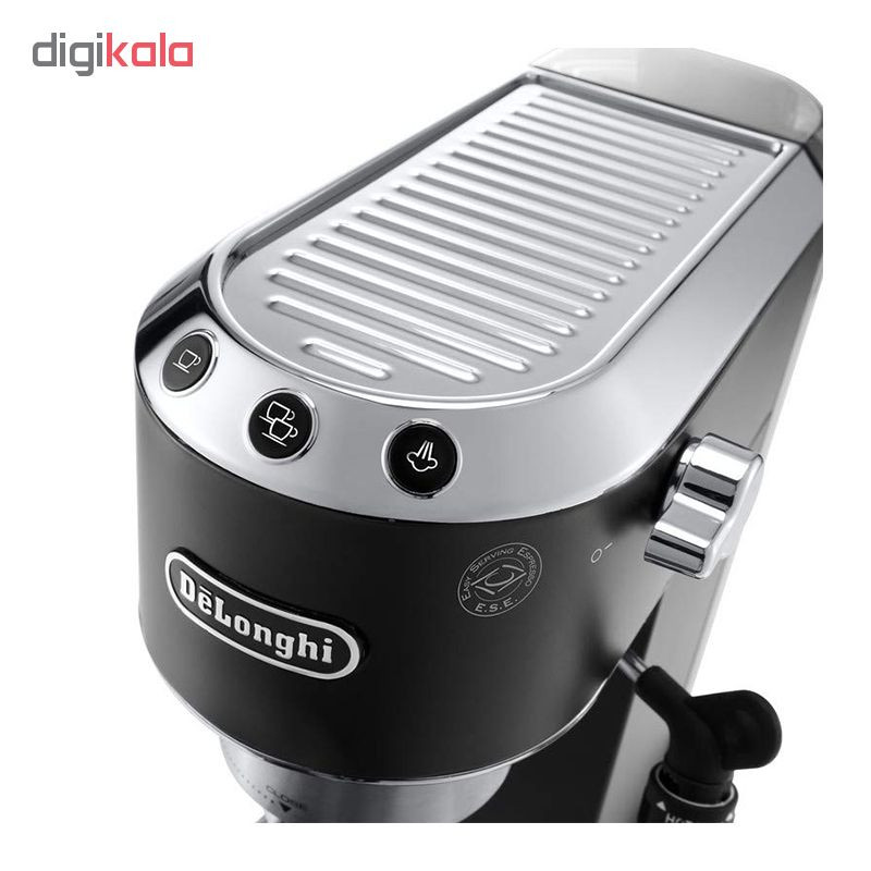 محصولی از شرکت ایتالیایی دلونگی میباشد. سیستم کاپوچینوساز قابل تنطیم": این سیستم بخار و هوا و شیر را میکس می کند تا با تولید کف شیر غلیظ، خامه ای و کف دار، کاپوچینویی عالی بدست آید. نگهدارنده فیلتر قهوه حرفه ای؛ هم برای قهوه آسیاب هم قهوه کیسه ای همراه با ابزاری برای خامه گیری برای یک یا دو پیمانه قهوه آسیاب یا قهوه کیسه ای سیستم سلف پرایمینگ به این معناست که دستگاه همیشه آماده استفاده است امکان خروج آب داغ مخزن آب جداشدنی سینی چکه جداشدنی با نشانگر سطح آب سیستم ضد چکه قفسه گرم کننده فنجان دارای فیلتر آب(اختیاری) دکمه روشن/خاموش با عملکرد استندبای اتوماتیک بعد از یک دوره مدت زمان اعلام فرا رسیدن رسوب زدایی را نمایش میدهد.