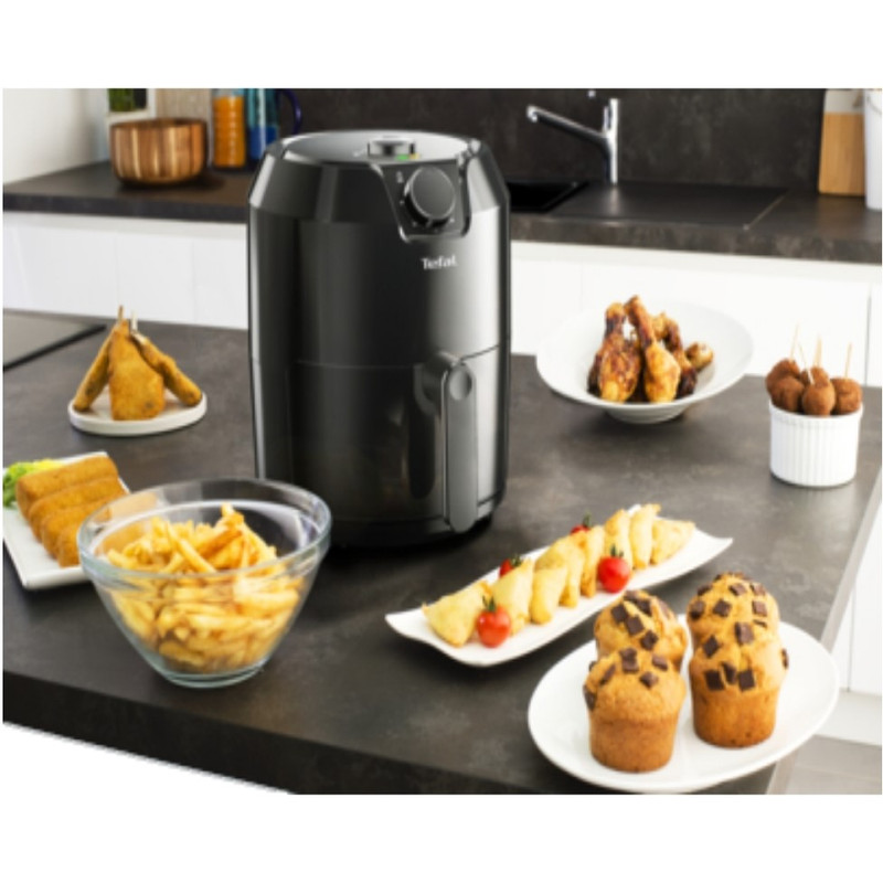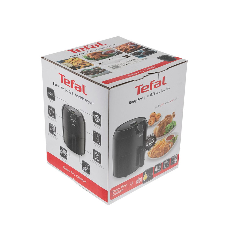 سرخ کن تفال مدل EY201 از جدیدترین سری سرخ کن های بدون روغن شرکت تفال است. قابلمه این دستگاه که ظرفیت 4.2 لیتری و برای مواد غذایی 1.2 لیتر (مناسب برای 6 نفر) دارد و روکش آن نچسب می باشد و خود دستگاه نیز در رنگ مشکی تولید شده است و طراحی زیبایی دارد. دمای سرخ کردن بر روی این دستگاه توسط کلید ولومی از 80 تا 200 درجه سانتی گراد قابل تغییر است و برای تایمر 60 دقیقه ای نیز کلید ولومی جداگانه ای طراحی شده است. این محصول توانایی انجام 4 کار را دارد: سرخ کردن، بریان کردن، کیک پختن و گریل کردن. که تمامی این کارها مانند سرخ کردن ماهی، بادمجان و پخت پیتزا و کیک بدون نیاز به روغن انجام میگیرد در نتیجه مواد غذایی پخته شده، سالم تر و رژیمی می شود. تمامی قطعات غیربرقی سرخ کن تفال مدل EY201 قابل شستشو در ماشین ظرفشویی می باشد. در پایان باید ذکر کرد که این دستگاه سیستم قطع کن خودکار نیز دارد که عملکرد ایمنی دستگاه را بالا می برد.