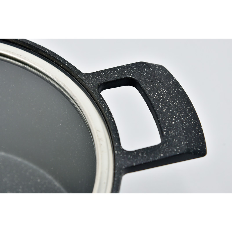 دارای 4 قابلمه به سایزهای 20، 24، 28 و 32 با درب شیشه ای