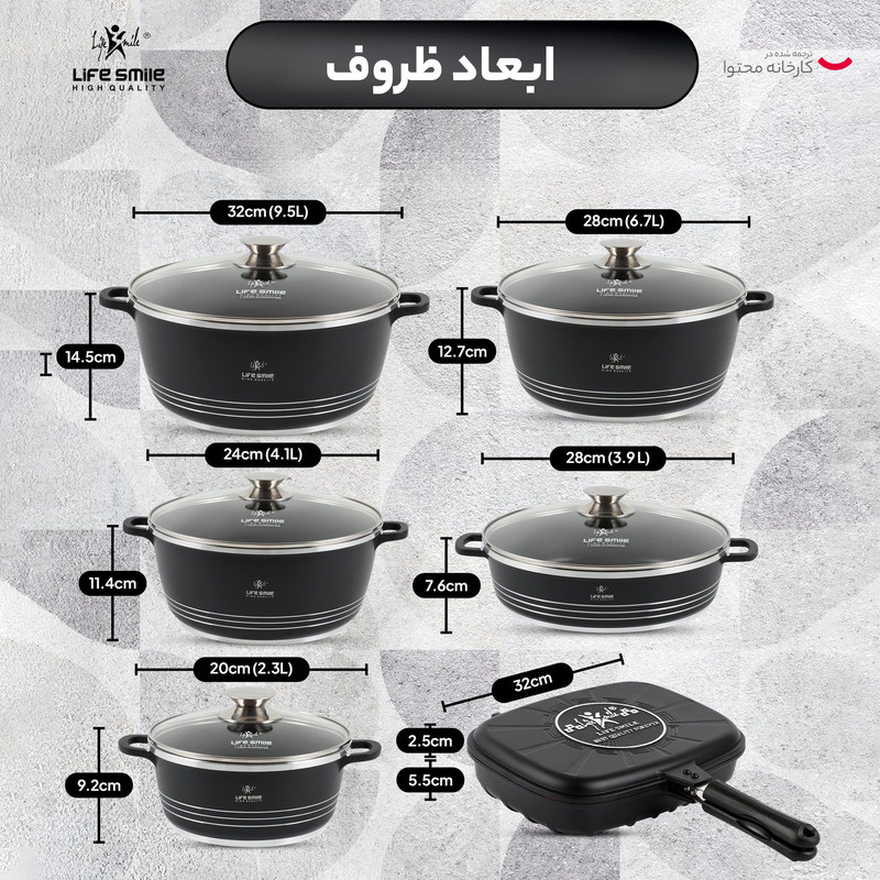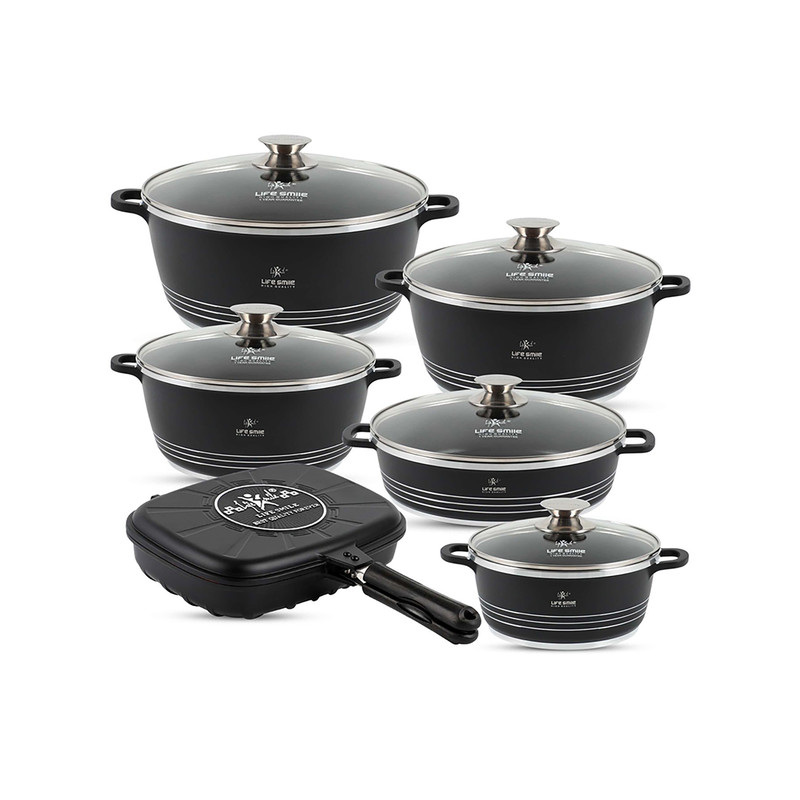 سرویس قابلمه با روکش گرانیت لایف اسمایل FLCM12 محصول مناسبی برای پخت غذای سالم و رژیمی است. کمترین چربی را به خود گرفته و تمیز کردن آن بسیار آسان است. این محصولات توسط تیم طراح متخصص در سبکهای متنوع و دلپذیر از مواد اولیه مرغوب ساخته شده است. جنس سرویس قابلمه با روکش گرانیت لایف اسمایل FLCM12 از چدن است و دارای پوشش گرانیت ضد استیک با دوام است. بدنه این محصول از آلومینیوم با کیفیت است که به خوبی گرما را انتقال میدهد و سبب میشود که غذا با حداقل انرژی مصرفی پخته و تهیه میشود.