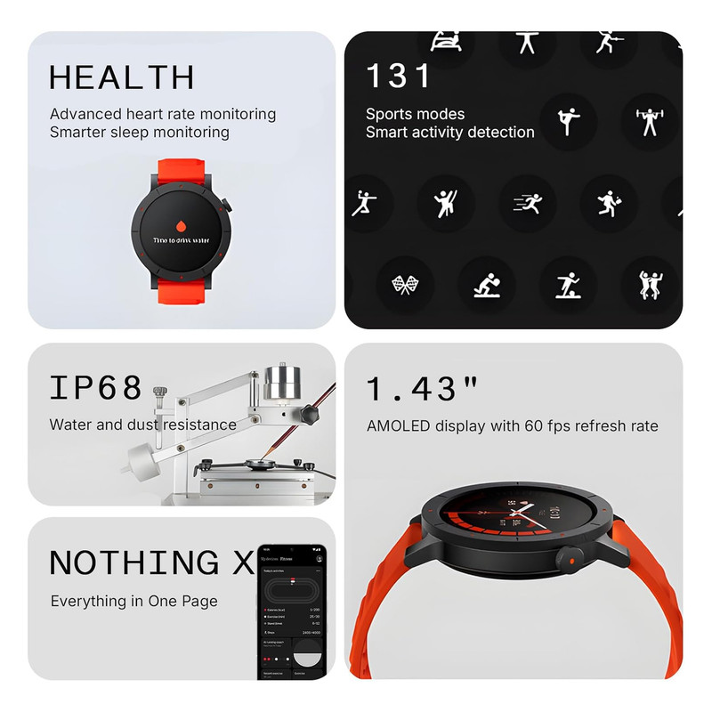 سایر مشخصات صفحه نمایش : صفحه نمایش 1.43 اینچی از نوع Amoled با رزولوشن 466x466 پیکسل و تراکم پیکسلی 326 پیکسل در هر اینچ