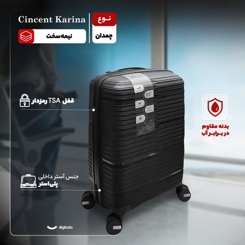 مجموعه چمدان سینسنت کارینا مدل C40344-M در سایز متوسط با ارتفاع ۶۵ سانتیمتر، گزینهای کاربردی و مقاوم برای سفر است. بدنهای نیمهسخت از جنس پلیپروپیلن بسیار مستحکم دارد که در برابر ضربه مقاوم است و در برابر تماس با آب مقاومتی مناسب از خود نشان میدهد. این چمدان شامل یک محفظه اصلی و چند جیب داخلی بوده و بند ضربدری داخل آن، نظمدهی محتویات را سادهتر میکند.