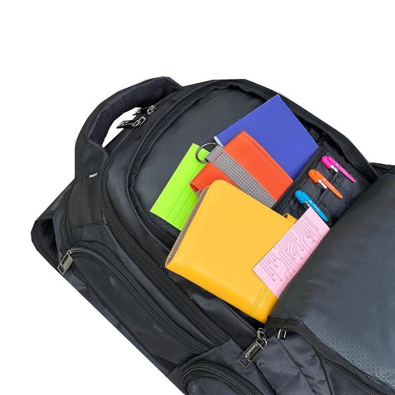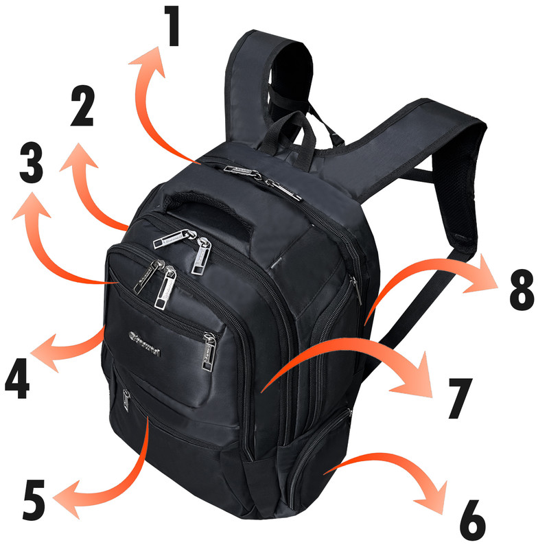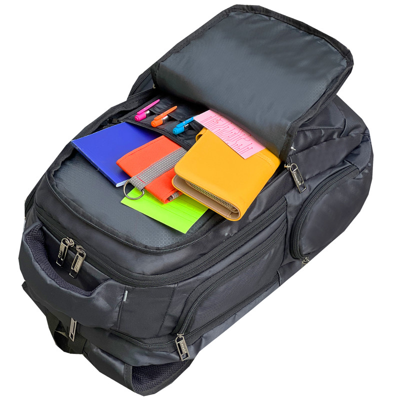 آلبوم کارت شناسایی , جیب بیرونی , جیب خودکار , جیب داخلی , دارای یک محفظه اصلی , محفظه نگهداری اسناد , محفظه نگهداری لپتاپ