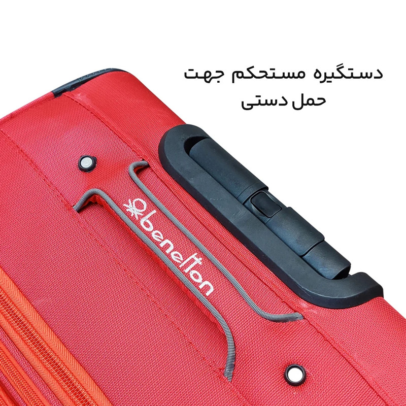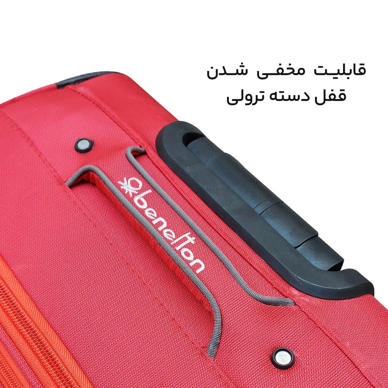 چمدان یکی از ملزومات ضروری هر سفری است. چمدان مدل B40326S سایز کوچک از جنس برزنت ضد آب و باکیفیت تولید شده است. قفل تعبیه شده آن از نوع 3 رمز بوده و با توجه به دوبل بودن زیپ محفظه اصلی، ضد سرقت بوده و از چمدان به خوبی محافظت می نماید. همچنین یک زیپ افزایش حجم نیز دارد که حجم چمدان را به اندازه 20 درصد افزایش می دهد. به همراه چمدان یک کاور باران نیز ارائه می شود که در روزهای بارانی و برای جلوگیری از خیس و کثیف شدن بسیار کاربرد دارد. این چمدان یک محفظه اصلی بزرگ دارد که با وجود بند امکان نظم دهی بهتری به لباس ها می دهد. درون این محفظه یک محفظه مجزای کوچک برای لباس های خیس وجود دارد. همچنین دو محفظه بیرونی برای دسترسی سریعتر به لوازم مورد نیاز وجود دارد. استراکچر ان مستحکم بوده و کیفیت بالایی دارد. دارای 4 چرخ دوبل و بی صدا با قابلیت چرخش 360 درجه است که حمل چمدان را آسان می کند. یک دسته ترولی سه حالته برای حمل و یک دستگیره برای بلند کردن چمدان دارد.