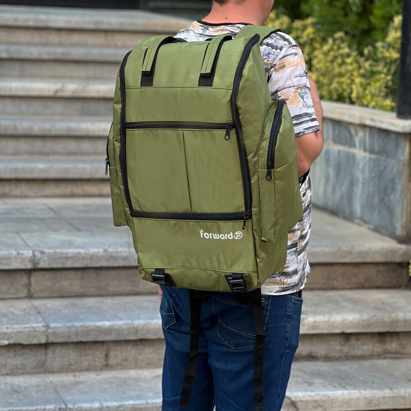 دارای یک جیب زیپی بسیار یزرگ قابل باز شدن به صورت چمدانی جهت قرار دادن وسایل سفر و دسترسی آسان به وسایل دارای دو جیب زیپی بزرگ در دو طرف کوله جهت قرار دادن وسایل و یا بطری نوشیدنی تا 1.5 لیتر دارای دو جیب زیپی در قسمت رویی کوله