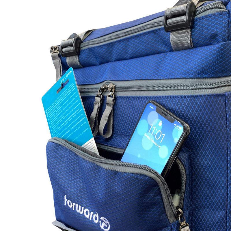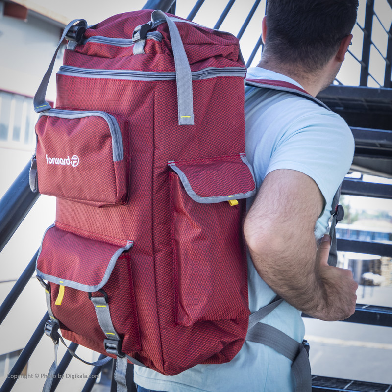 دارای یک جیب زیپی مجزا در قسمت بالای کوله دارای یک جیب زیپی و یک زیپ چسبی در قسمت جلوی کوله دارای دو جیب زیپی بزرگ در دو طرف کوله جهت قرار دادن وسایل و یا بطری نوشیدنی تا 1.5 لیتری