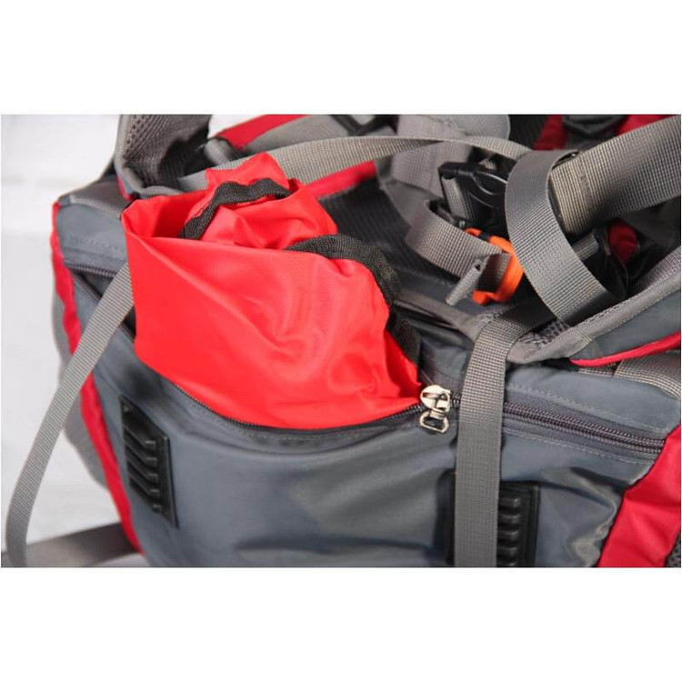 در بخش جلویی کوله یک جیب زیپی برای درسترسی آسان به لوازم مورد نیاز وجود دارد. همچنین در هر طرف از کنار کوله محفظه توری آب و نوشیدنی و وسایل مختلف استفاده شده است.