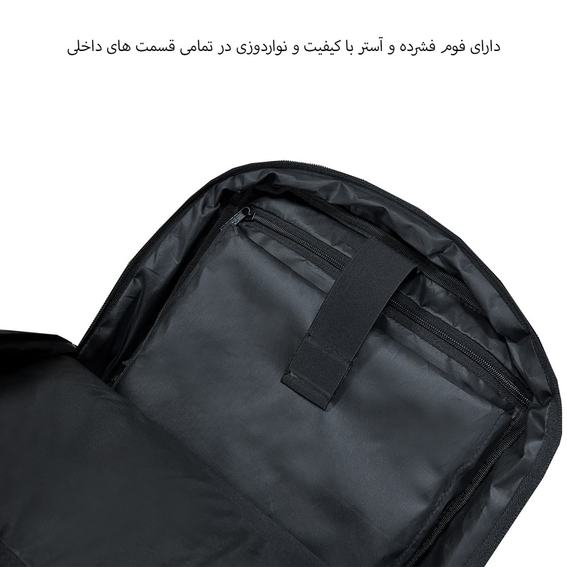 جیب بیرونی , جیب داخلی , دارای یک محفظه اصلی , محفظه نگهداری اسناد , محفظه نگهداری لپتاپ