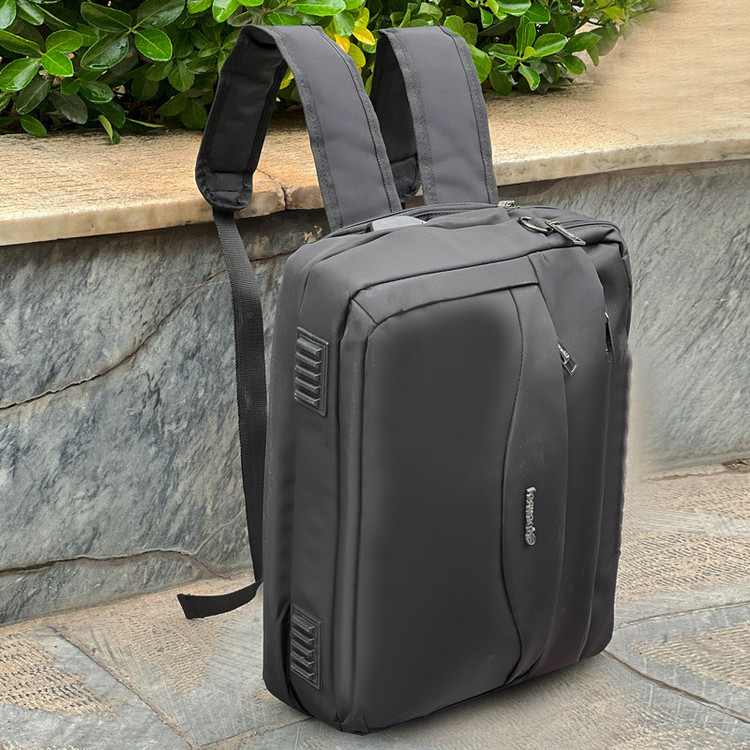 دارای یک بند دوشی قابل جدا شدن و قابل تنظیم جهت حمل دوشی دارای دو بند کولی قابل مخفی شدن جهت حمل به صورت کوله ای دارای دو دسته همراه با چسب دوبل جهت حمل دستی