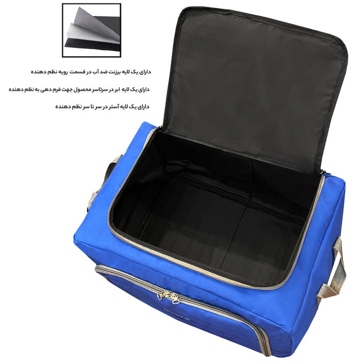 سایر توضیحات: دارای دو دسته از جنس نوار کشیده شده از کف نظم دهنده به بالا جهت حمل به صورت تک نفره و دو نفره