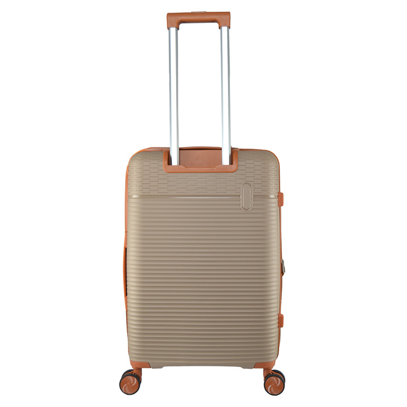 بدنه پلی پرو پیلن که ورقیست مشابه پلاستیک در قطعات خودرو ، صنایع پزشکی ، لوازم خانگی چمدانهای و... استفاده میشود بسیار سبک است و مقاوت بالایی دارد و البته قیمت ارزانتری نسبت به ورق پلی کربنات دارد ، به لحاظ محیط زیستی هم در اکثر مواقع قابل بازیافت میباشد سطح ورق کمی لیز است و بهتر است چمدانی که از این جنس ساخته شده کمی آج داشته باشد تا از روی سطوح مختلف لیز نخورد . آستر داخل چمدان اهمیت دارد چون چمدان شما دائما در طول سفر همراه شماست و مواد پلی استر بی کیفیت بوی نامطبوعی را در طول سفر برای شما ایجاد خواهد کرد و ممکن است رو بقیه لباسهای شما این بوی نامطبوع باقی بماند که بی شک حس ناخوشایندی دارد. آستری این مدل از مواد پلی استر بسیار با کیفیت ساخته شده و جای نگرانی از این بابت وجود ندارد. همچنیین استری این مدل دوخت با کیفیتی هم دارد. یراق چمدان یعنی زیپ دسته و چرخهای چمدان همگی نمره ی قابل قبولی میگیرند زیپ دوبل دسته ی تلسکوپی پایدار در هر پله و چهار چرخ دوبل 360 درجه و زیپ افزایش فضا و از همه مهمتر قفل TSA که در سفرهای هوایی بسیار واجب است در این مدل وجود دارد.
