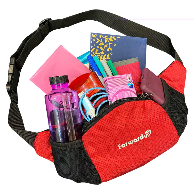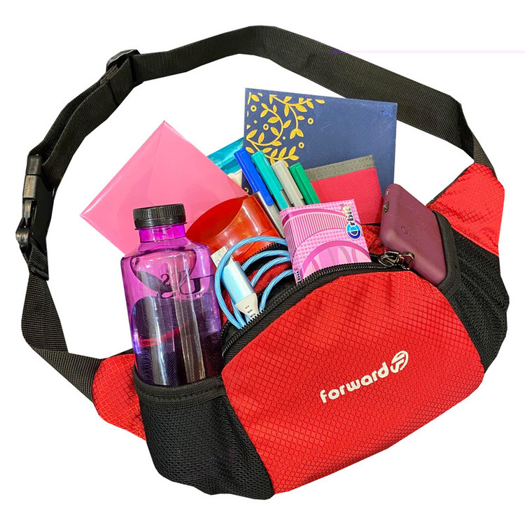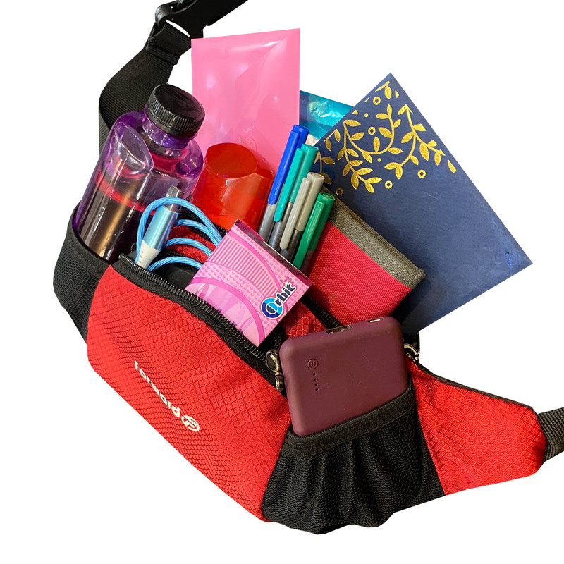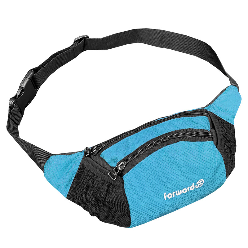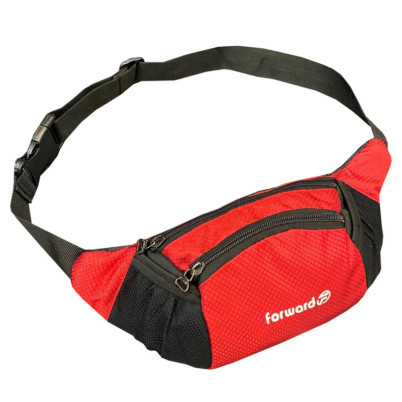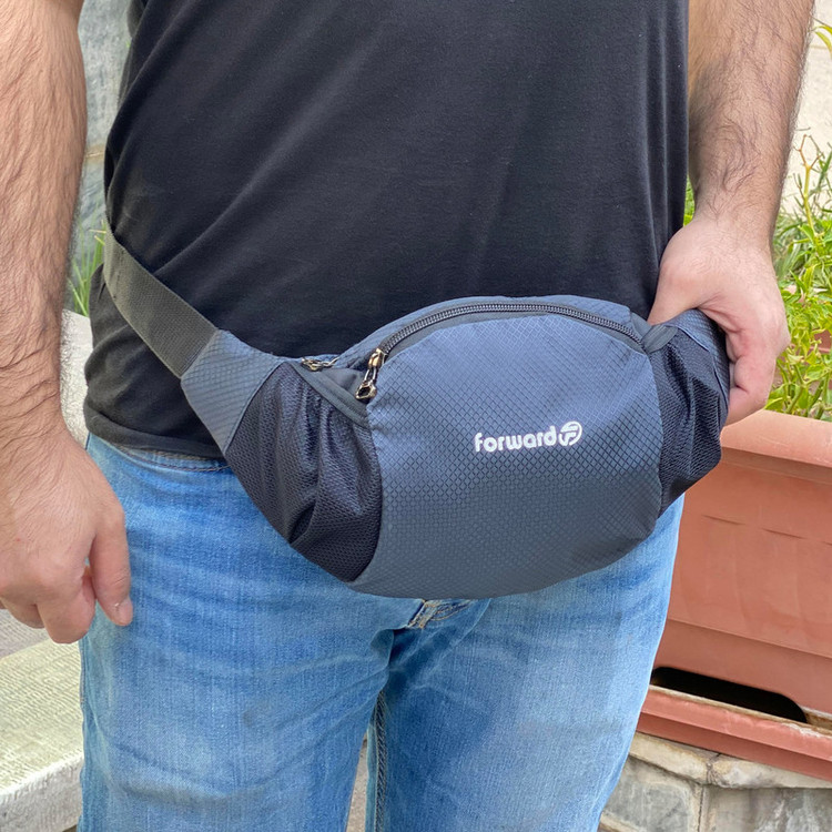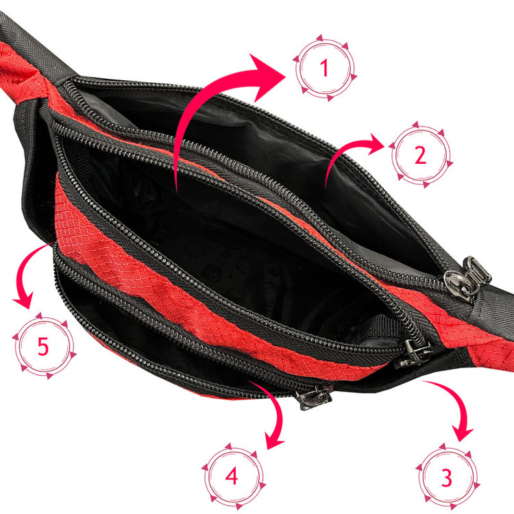 دارای یک زیپ مخفی در قسمت پشتی کیف کمری دارای 2 زیپ بزرگ در قسمت جلویی کیف کمری دارای دو جیب توری کش دار جهت قرار دادن وسایل و بطری نوشیدنی