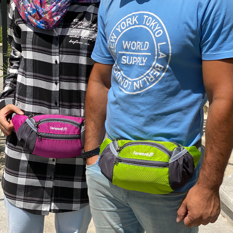 دارای یک زیپ مخفی در قسمت پشتی کیف کمری دارای 3 زیپ بزرگ در قسمت جلویی کیف کمری دارای دو جیب توری کش دار جهت قرار دادن وسایل و بطری نوشیدنی