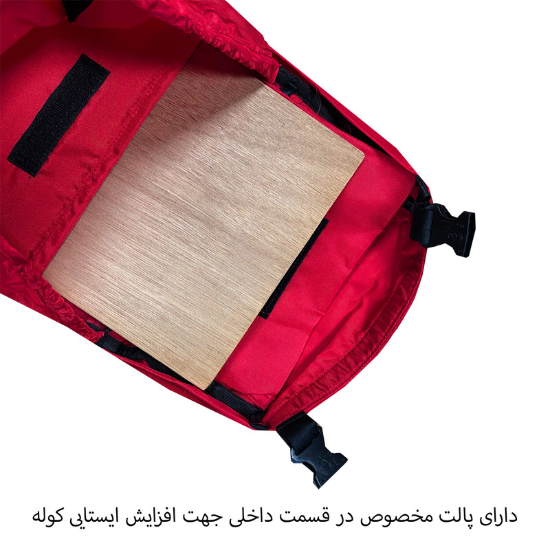دارای جنس بدنه برزنت ریپس وارداتی ضد آب و قابل شست و شو دارای پالت MDF مخصوص در قسمت داخلی کوله دارای بند مرکز ثقل کمری داراب نوار های الگانس الیک دوزی