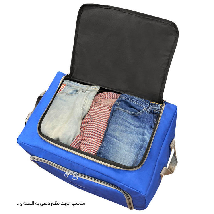 دارای آستر داخلی با کیفیت دارای دو زیپ از سمت بالا و جلویی جهت دسترسی آسان به وسایل داخلی دارای زیپ های روان دارای جنس بدنه برزنت ضد آب و قابل شست و شو مناسب برای قرار دادن وسایل سفر و کمپ و وسایل داخل کمد و البسه و پتو