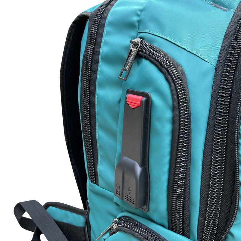 در قسمت جلو، دو جیب زیپی (یکی در بالا و دیگری در پایین) دسترسی آسان به وسایل ضروری را ممکن میسازند. در بخش راست کوله، یک جیب زیپی همراه با جک هندزفری و درگاه USB تعبیه شده است که امکان اتصال به پاوربانک یا دستگاههای پخش موسیقی را فراهم میکند. سمت چپ کوله نیز دارای یک جیب زیپی با بخشی مخصوص برای نوشتن نام و مشخصات فردی است. همچنین دو جیب زیپی دیگر در طرفین، فضای مناسب برای حمل وسایل کوچکتر مانند بطری آب یا لوازم جانبی فراهم میکند.