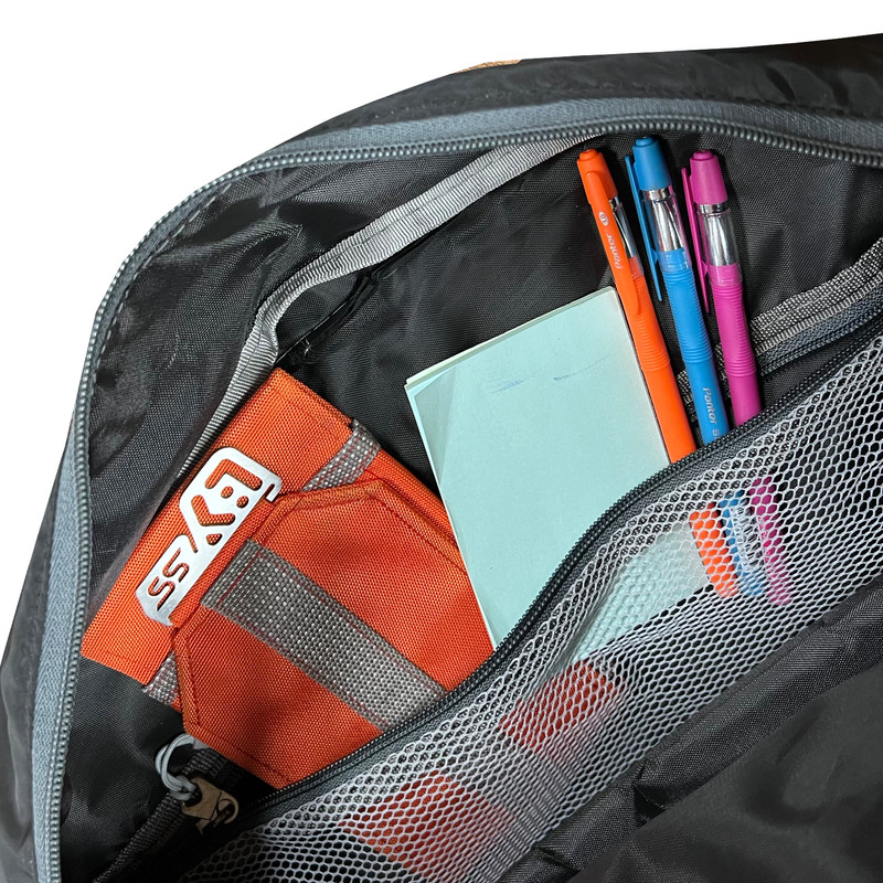 دارای دو دسته از جنس نوار الگانس ضخیم همراه با پوشش چسبی دوبل جهت حمل آسان تر به صورت دستی دارای یک بند بلند قابل جدا شدن و قابل تنظیم جهت حمل به صورت دوشی