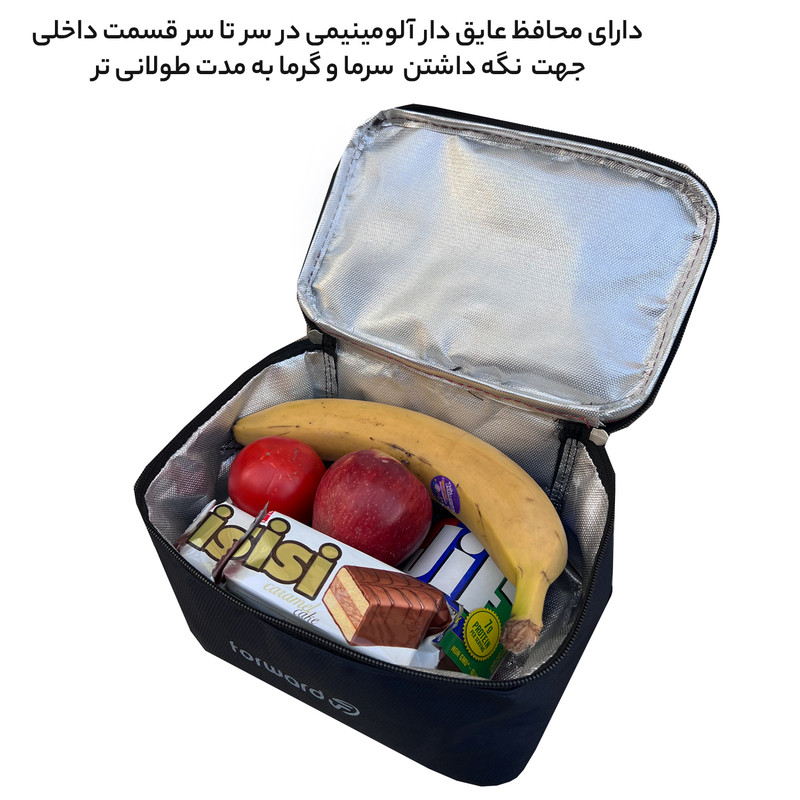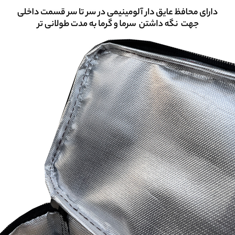 دارای یک محفظه اصلی همراه با پوشش ورق آۀومینیم صنعتی در سر تا سر قسمت داخلی جهت نگه داری سرما و گرما در داخل ساک به مدت زمان طولانی تر