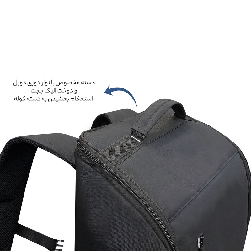 دارای یک دسته با نوار دوزی دوبل و دوخت الیک جهت حمل کوله به صورت دستی. دارای یک دسته از جنس نوار جهت آویزان کردن کوله. دارای دو بند کولی همراه با دوخت الیک و نوار دوزی جهت حمل به صورت کوله.