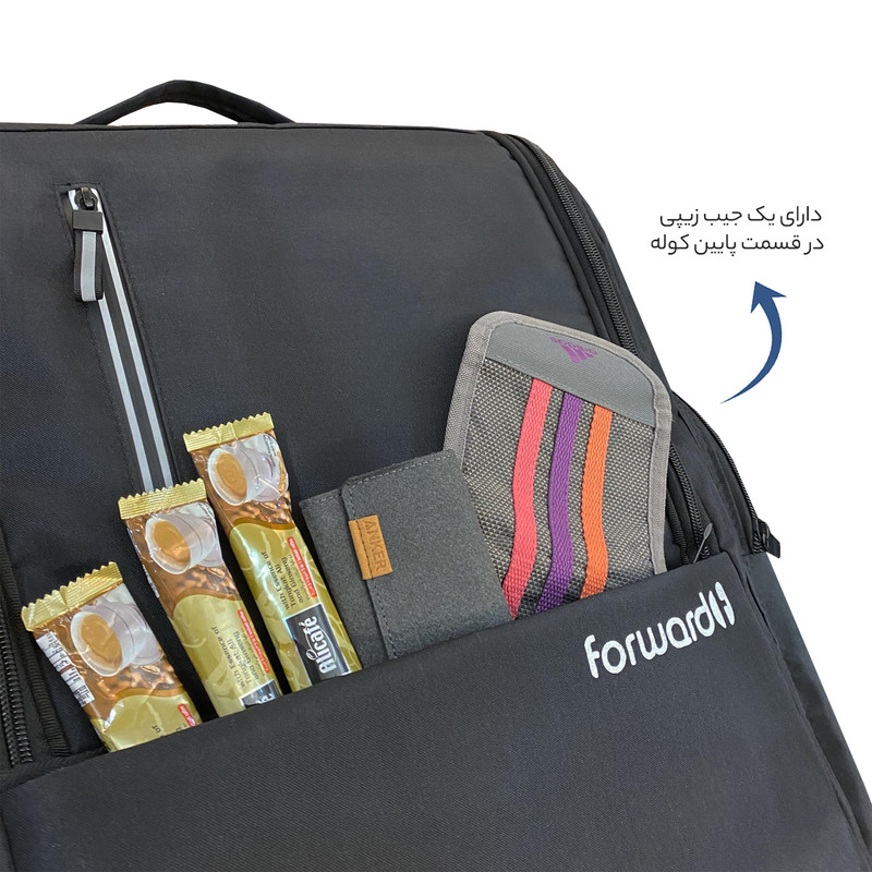 دارای چهار جیب بیرونی و یک جیب داخلی است و یک جیب زیپی شبرنگ در جلوی کوله برای دسترسی سریع به وسایل تعبیه شده است. این کوله قابلیت حمل به صورت دستی و رودوشی را دارد و طراحی ارگونومیک آن فشار روی شانهها و کمر را کاهش میدهد. همچنین کفی مقاوم با استوک محافظ از ساییدگی کوله جلوگیری میکند.