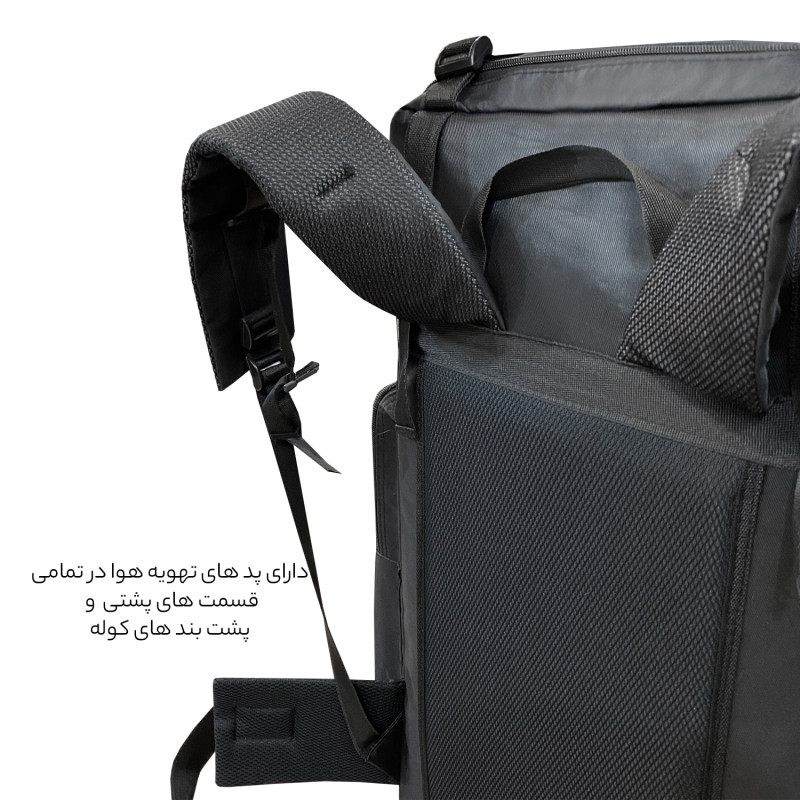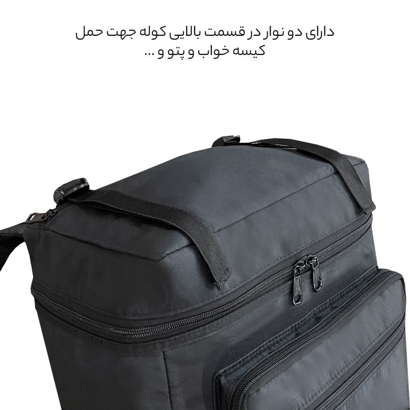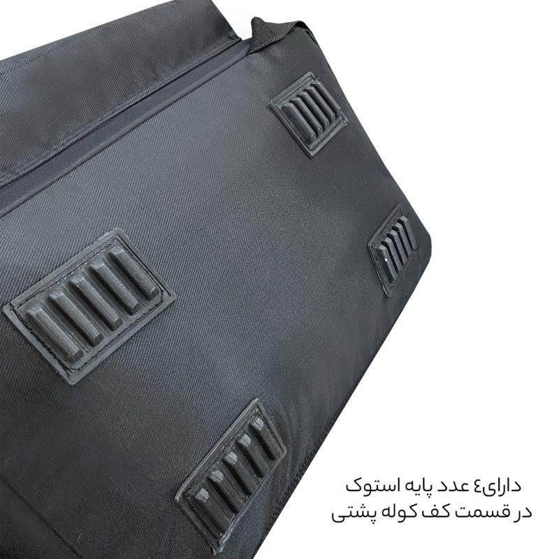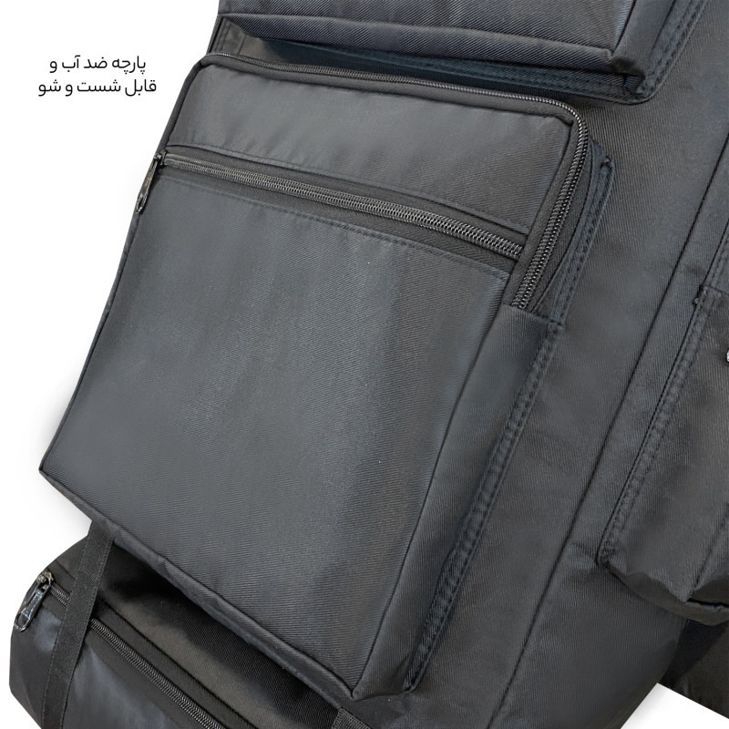 دارای جنس بدنه ضد آب و قابل شست و شو دارای یک دسته جهت حمل دستی دارای 4 عدد پایه استوک در قسمت کف کوله جهت افزایش مقاومت کف کوله