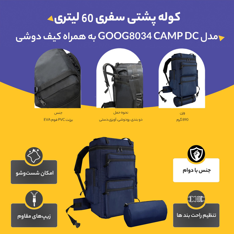 کوله پشتی سفری 60 لیتری مدل GOOG8034 CAMP DC به همراه کیف دوشی
