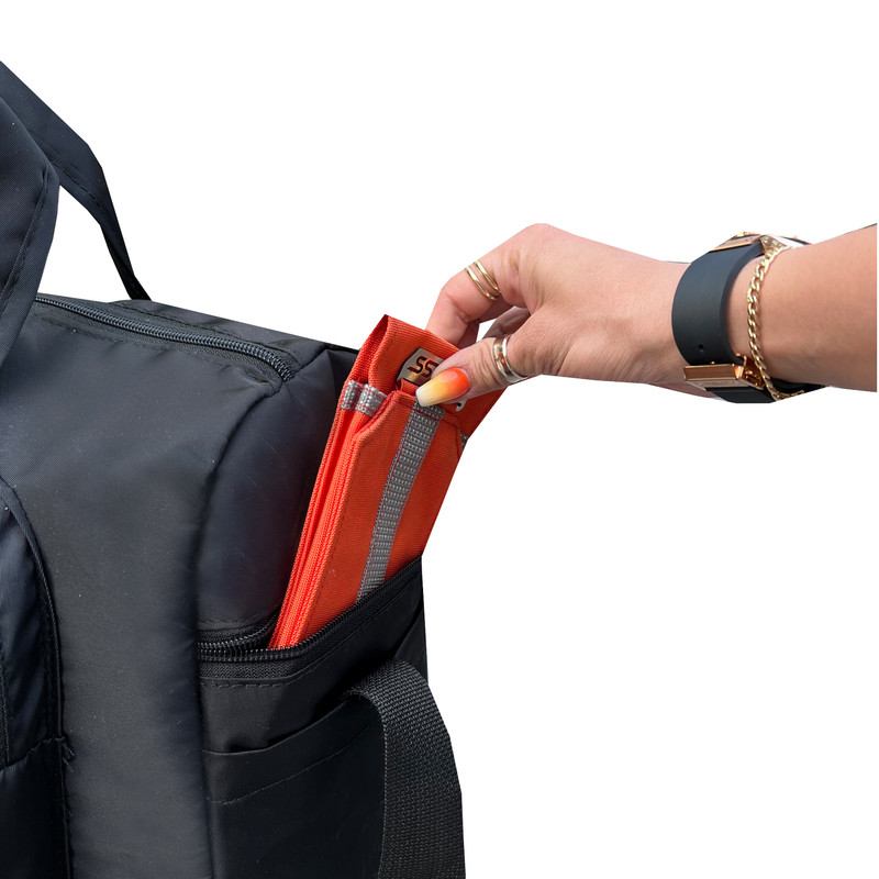 دارای دو دسته از جنس بدنه همراه با چسب دوبل دسته جهت حمل آسان تر به صورت دستی دارای یک بند بلند دوشی قابل تنظیم جهت حمل به صورت دوشی