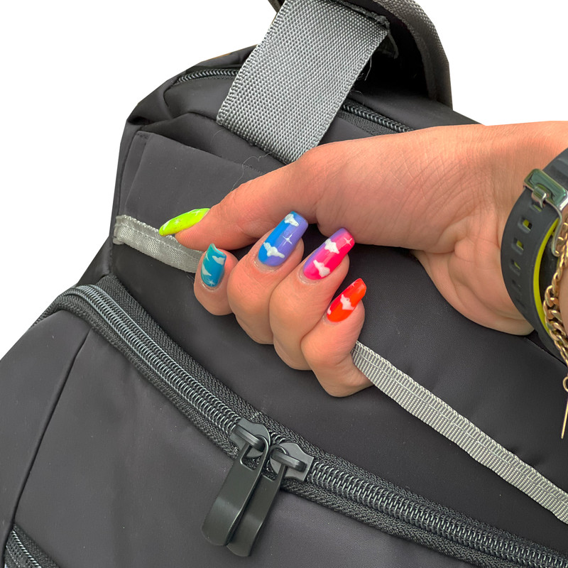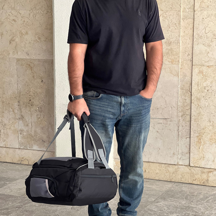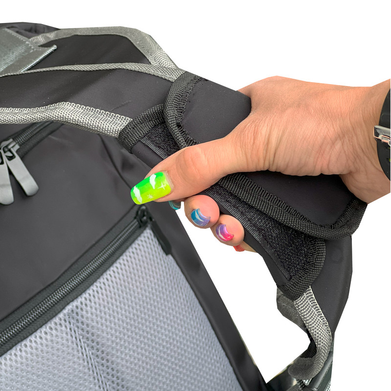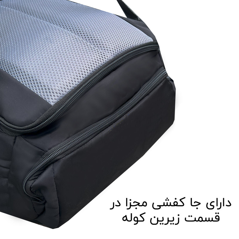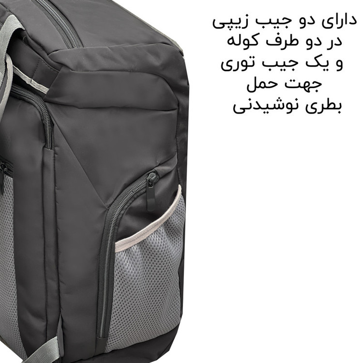 دارای یک دسته جهت حمل دستی دارای دو بند کوله جهت استفاده به صورت کوله و یا ساک ورزشی ( دو کاربردی )