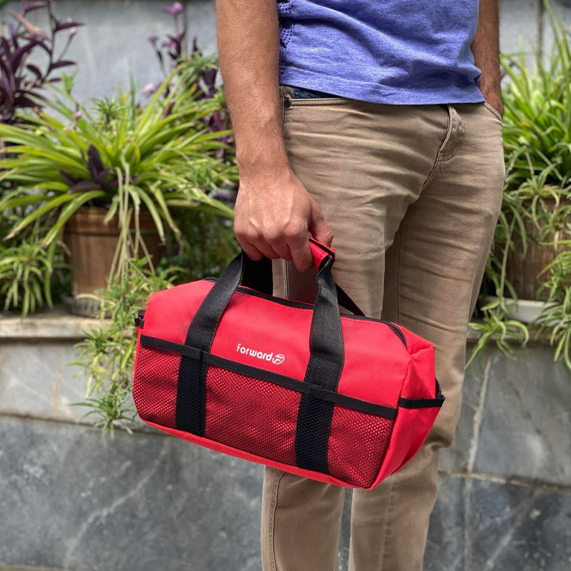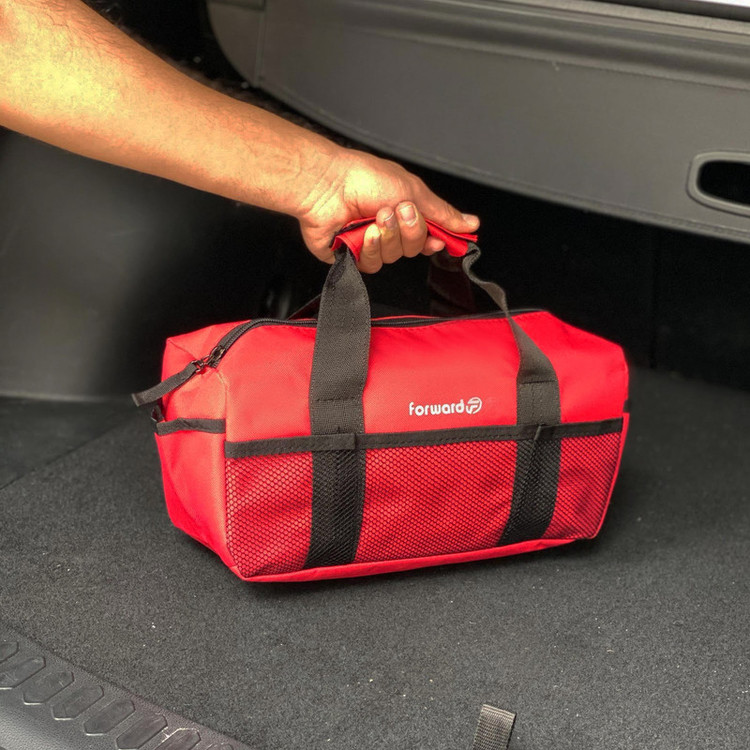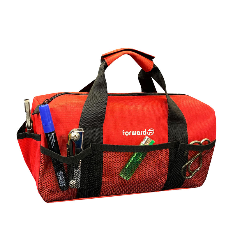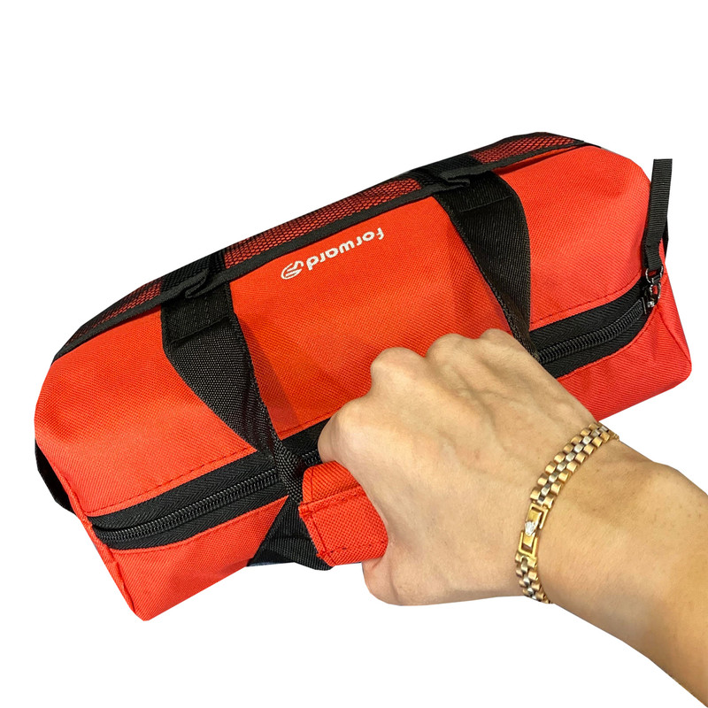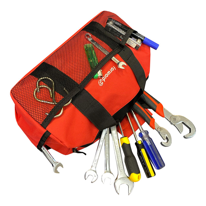 دارای یک محفظه اصلی جهت قرار دادن ابزار اصلی دارای دو جیب در دو طرف کیف ابزار جهت قرار دادن وسایل کوچک دارای 3 محفظه توری در قسمت جلویی کیف ابزار دارای ابر و آستر در سرتاسر کیف ابزار دارای زیپ روان دارای دسته چسبی جهت حمل اسان تر