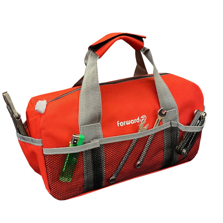 دارای یک محفظه اصلی جهت قرار دادن ابزار اصلی دارای دو جیب در دو طرف کیف ابزار جهت قرار دادن وسایل کوچک دارای 3 محفظه توری در قسمت جلویی کیف ابزار دارای ابر و آستر در سرتاسر کیف ابزار دارای زیپ روان دارای دسته چسبی جهت حمل اسان تر