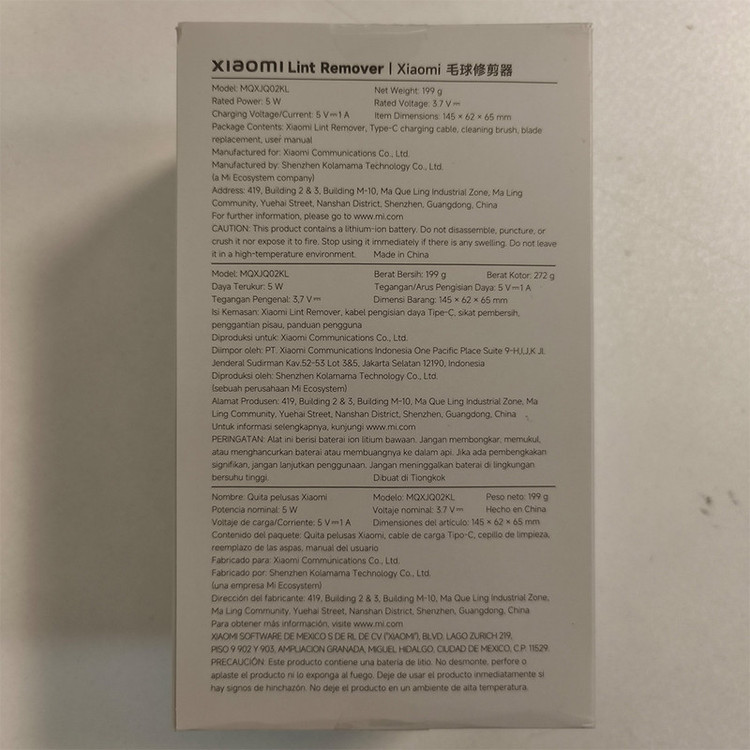 پرزگیر لباس شیائومی مدل MQXJQ01KL یک دستگاه کارآمد برای حذف پرز و کرک از انواع پارچهها است. این دستگاه با طراحی جمعوجور و وزن سبک ۲۱۳ گرم، استفاده آسانی دارد و به راحتی در دست جا میشود. بدنه آن از پلاستیک ABS مقاوم ساخته شده و با رنگ سفید مات، ظاهری زیبا و مدرن دارد. این پرزگیر مجهز به ۵ تیغه چرخان استیل ضد زنگ است که با دقت بالا، پرزها را از بین میبرد. سطح فلزی مشبک با ضخامت ۰.۳۵ میلیمتر، از آسیب به بافت پارچه جلوگیری میکند و مکش قوی دستگاه، پرزها را به داخل مخزن جمعآوری میکند. باتری لیتیومی ۱۳۰۰ میلیآمپر ساعتی آن پس از ۲ ساعت شارژ کامل، تا ۹۰ دقیقه کارایی دارد و از طریق پورت USB شارژ میشود. وجود نشانگر LED وضعیت باتری و عملکرد دستگاه را نشان میدهد. این پرزگیر برای انواع پارچهها از جمله پشمی، ابریشمی و ترمه مناسب است و با طراحی متحرک سری، تمیز کردن آن آسان است. همچنین، دارای دو سنسور برای خاموش کردن خودکار دستگاه و سری محافظ فلزی برای جلوگیری از آسیب به بافت لباس است. اقلام همراه شامل یک برس تمیزکننده، دفترچه راهنما و کابل شارژ است. دستگاه پاککننده پِلوس شیائومی مدل MQXJQ02KL دارای ابعاد ۱۴۵ × ۶۲ × ۶۵ میلیمتر و وزن ۲۱۳ گرم است که به راحتی قابل استفاده و حمل میباشد. این دستگاه با طراحی جمعوجور و رنگ سفید، از جنس پلاستیک مقاوم ABS ساخته شده و برای استفاده طولانیمدت مناسب است. همراه دستگاه یک کابل شارژ USB نوع C، برس تمیزکننده و دفترچه راهنما وجود دارد. توان دستگاه معادل ۵ وات است و ولتاژ عملیاتی آن ۳.۷ ولت با ورودی ۵ ولت و ۱ آمپر میباشد. این دستگاه به دلیل طراحی ارگونومیک و عملکرد قدرتمند خود، به راحتی قادر است پِلوس و پرزهای چسبیده به لباسها را از بین ببرد. کابل شارژ دستگاه از نوع USB نوع C است که برای شارژ سریعتر و راحتتر بسیار مناسب است. این دستگاه، عملکردی ایمن و موثر دارد و از آن میتوان برای انواع پارچهها به راحتی استفاده کرد.