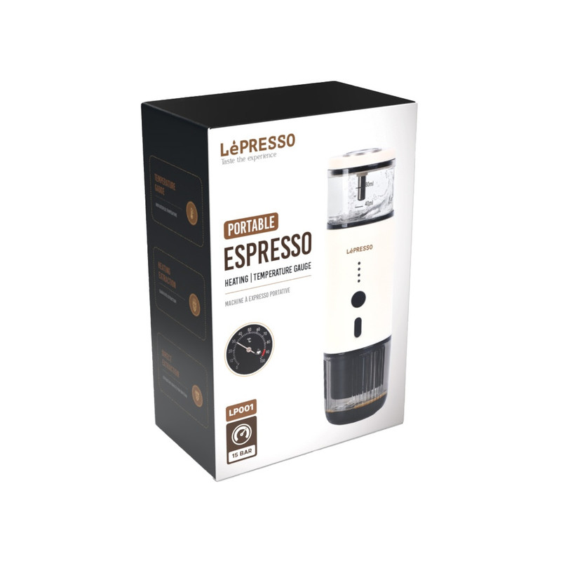 دستگاه اسپرسوساز قابل حمل LePresso راه حلی ایده آل برای دوستداران قهوه است که به اسپرسوی خود در حال حرکت نیاز دارند. با یک مخزن آب 80 میلی لیتری، برای دم کردن یک شات اسپرسو در هر زمان و هر مکان عالی است. مجهز به سه باتری 2500 میلی آمپر ساعتی، می تواند تا 200 اسپرسو با استفاده از آب از قبل گرم شده یا حداکثر 5 اسپرسو با آب سرد یا دمای اتاق تولید کند. این دستگاه از طریق درگاه Type-C با ورودی 5 ولت/3 آمپر به سرعت شارژ می شود و انرژی 135 وات برای قهوه ای قوی و خوش طعم ارائه می دهد. فشار استخراج 15 بار آن تضمین می کند که هر شات غنی و پر طعم است. ساخته شده از فولاد ضد زنگ درجه مواد غذایی، بادوام و ایمن برای استفاده طولانی مدت است. این دستگاه همچنین با غلاف های نسپرسو و پودر قهوه سازگار است و انعطاف پذیری را برای ترجیحات قهوه شما ارائه می دهد.