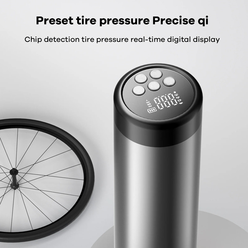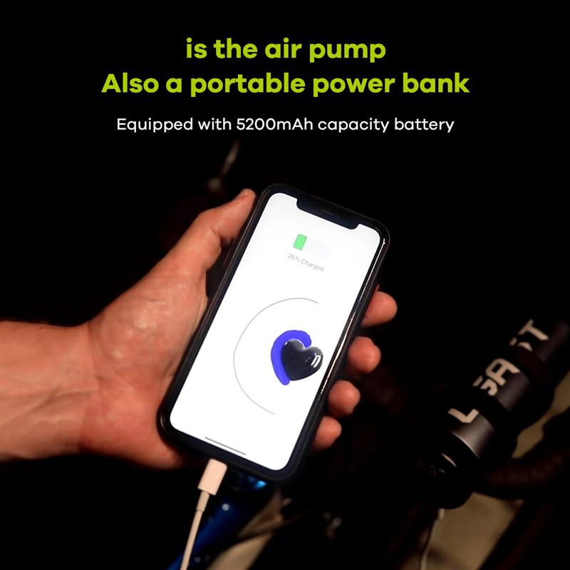 ظرفیت باتری: 5200 میلی آمپر ساعت | دارای پورت Type-C و پورت پمپ باد | فشار تولیدی پمپ باد تا 150PSI | دارای چراغ قوه | نمایشگر دیجیتالی