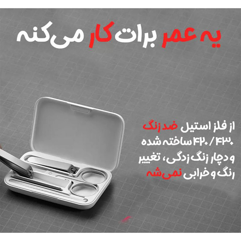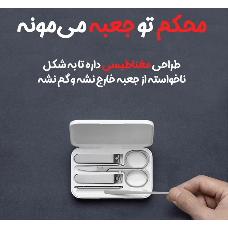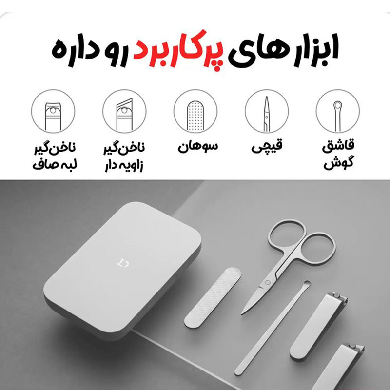 شیائومی با زیر برند معروف و محبوب خود میجیا، دستی در ابزار آلات بهداشتی برده و از ابزار اصلاح ناخن 5 تکه با عنوان ست اصلاح شیائومی مدل Sku:DZN4015CN رونمایی کرده است. در نگاه اول، یک باکس 65×104×17.3 میلی متری با طراحی مینیمالیستی میبینیم که پس از باز کردن آن 7 ابزار کاربردی برای اصلاح ناخن وجود دارد. با توجه به وزن 104 گرمی و ساختار کوچکی که دارد، یک گزینه مناسب برای حمل روزانه داخل کیف به حساب میآید. خوشبختانه کلیه ابزارهای داخل باکس از استیل ضد زنگ 420/430 ساخته شده اند که دارای استحکام بالا بوده و در استفاده طولانی مدت به هیچ عنوان تغییر رنگ نمیدهد.شاید برایتان جالب باشد اگر بدانید این چند قلم کاربردی، 84 فرآیند پیچیده اصلاح ناخن را انجام میدهد.این ست اصلاح بهداشتی (Xiaomi Mijia Nail Clippers Set) از 5 قلم کاربردی شامل قیچی کوچک، دو ناخنگیر، سوهان و یک قاشق گوش است که همگی جزو پرطرفدارترین و ضروری ابزار آلات بهداشتی هستند. همانطور که اشاره شده، این ست شامل دو ناخنگیر با لبههای صاف و زاویه دار است که برای اصلاح ناخن کاربرد دارد. بافت سوهان ناخن نیز بافتی استاندارد برای جلای ناخن و منحل کردن گوشههای تیز آن دارد.قیچی نیز عمدتا برای اصلاح موهای ابرو و قاشق گوش نیزبرای تمیز کردن مجرای گوش مفید خواهد بود.